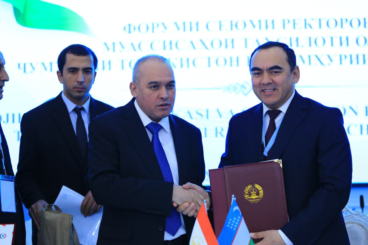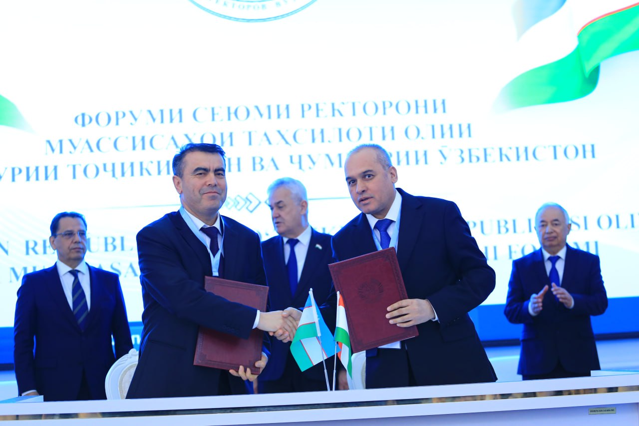 По итогам форума состоялась церемония подписания двусторонних соглашений о сотрудничестве между вузами Республики Таджикистан и Республики Узбекистан, направленных на развитие совместных образовательных программ, проведение научных исследований и расширение академических обменов.
