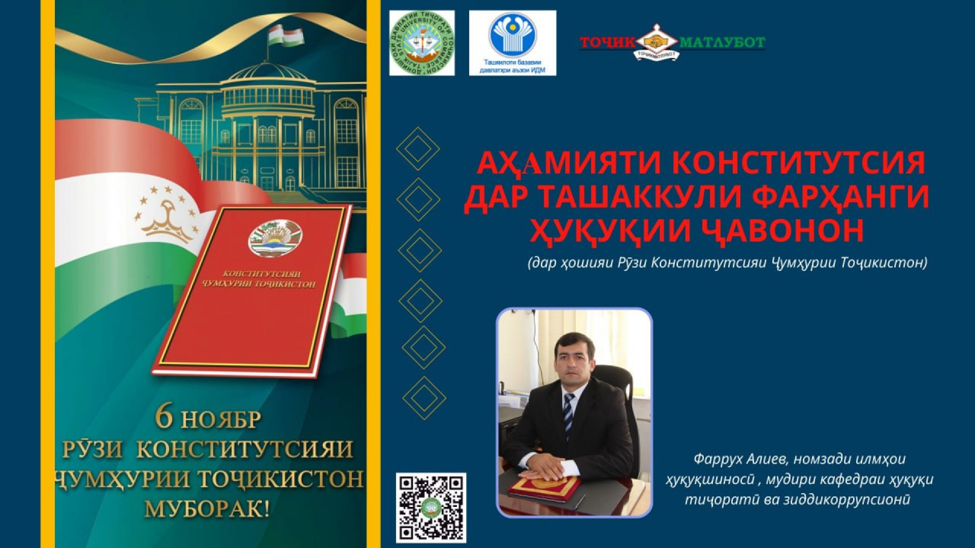 Алиев Фарух Шарифович, н.и.ҳ., дотсент, мудири кафедраи ҳуқуқи тиҷоратӣ ва зиддикоррупсионии ДДТТ