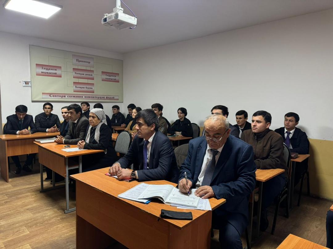 Дар маҷлиси судӣ донишҷӯёни курси 4 – уми ихтисоси 24010104 Олими Ф. – нақши судя, Файзализода Н. – нақши прокурор, Урунов С. – нақши котиби маҷлиси судӣ, Бобомуродов Н. – нақши муфаттиш, Исоев С. – нақши ҳимоячӣ ва Салимов Қ. – нақши айбдоршавандаро бозӣ карданд.