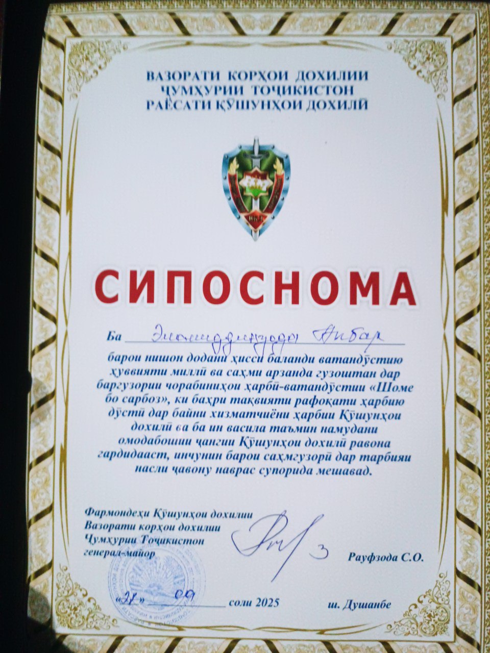 - Эмомиддинзода Акбар, донишҷӯи ихтисоси 25010731.