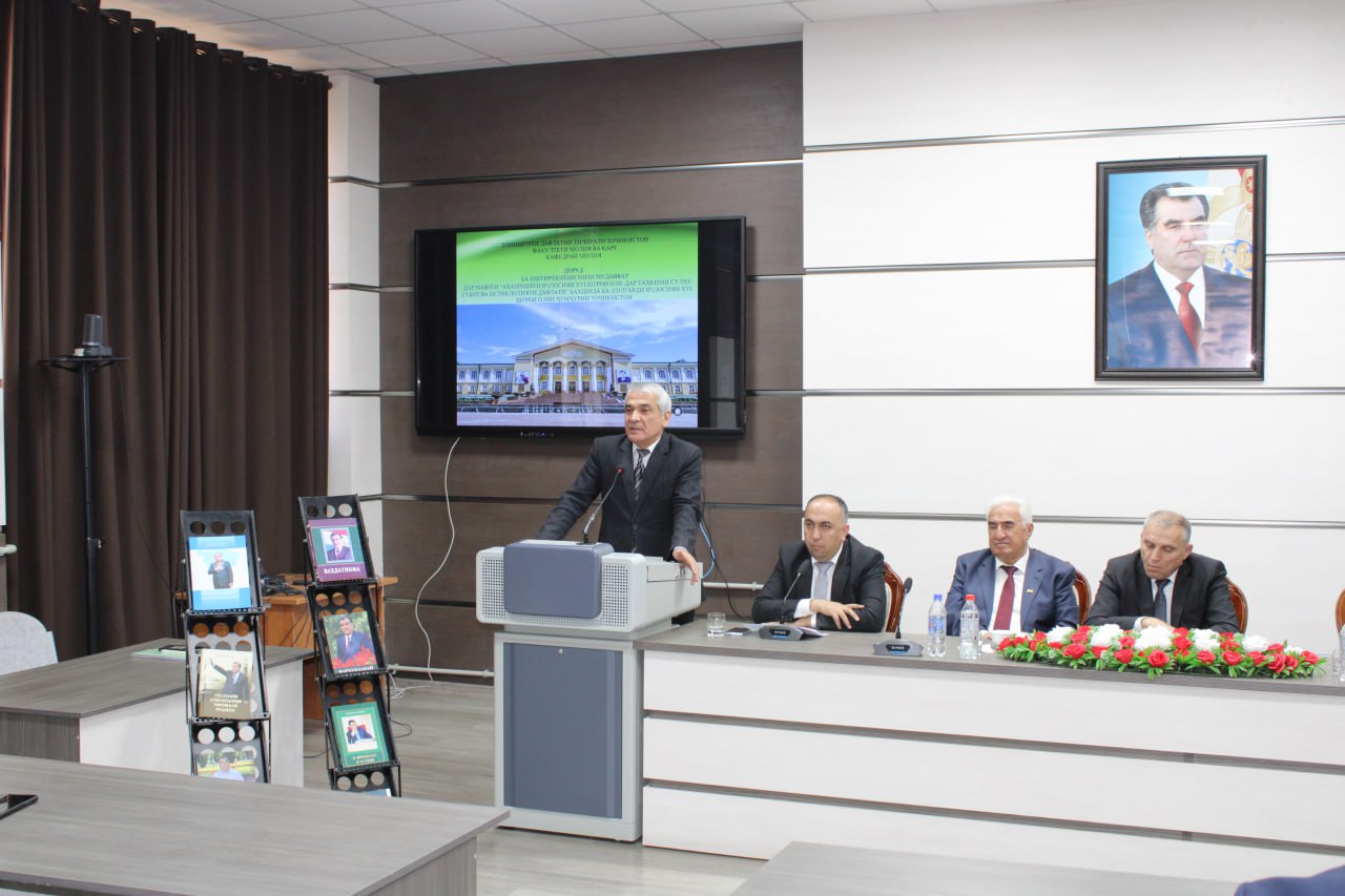 Мизи мудавварро муовини ректор оид ба илм ва робитаҳои байналмилалӣ, н.и.и., дотсент Ҷамшед Машокиров ҳусни ифтитоҳ бахшида, доир ба аҳаммияти таърихӣ ва сарнавиштсози Иҷлосияи XVI Шурои Олӣ барои халқи тоҷик ибрози андеша кард. Аз ҷумла, зикр гардид, ки Иҷлосияи XVI Шӯрои Олии Ҷумҳурии Тоҷикистон дар таърихи давлатдории навини мо саҳифаи сарнавиштсоз ба ҳисоб рафта, маҳз дар ҳамин иҷлосияи тақдирсоз бо иродаи қавии миллат ва роҳбарии хирадмандонаи Пешвои миллат муҳтарам Эмомалӣ Раҳмон заминаи барқароршавии сулҳ, ваҳдат ва рушди устувори давлат гузошта шуд.