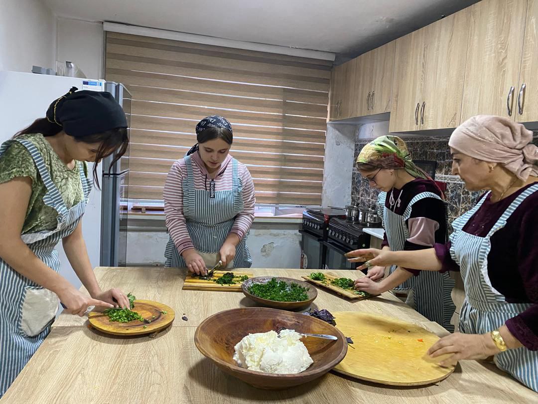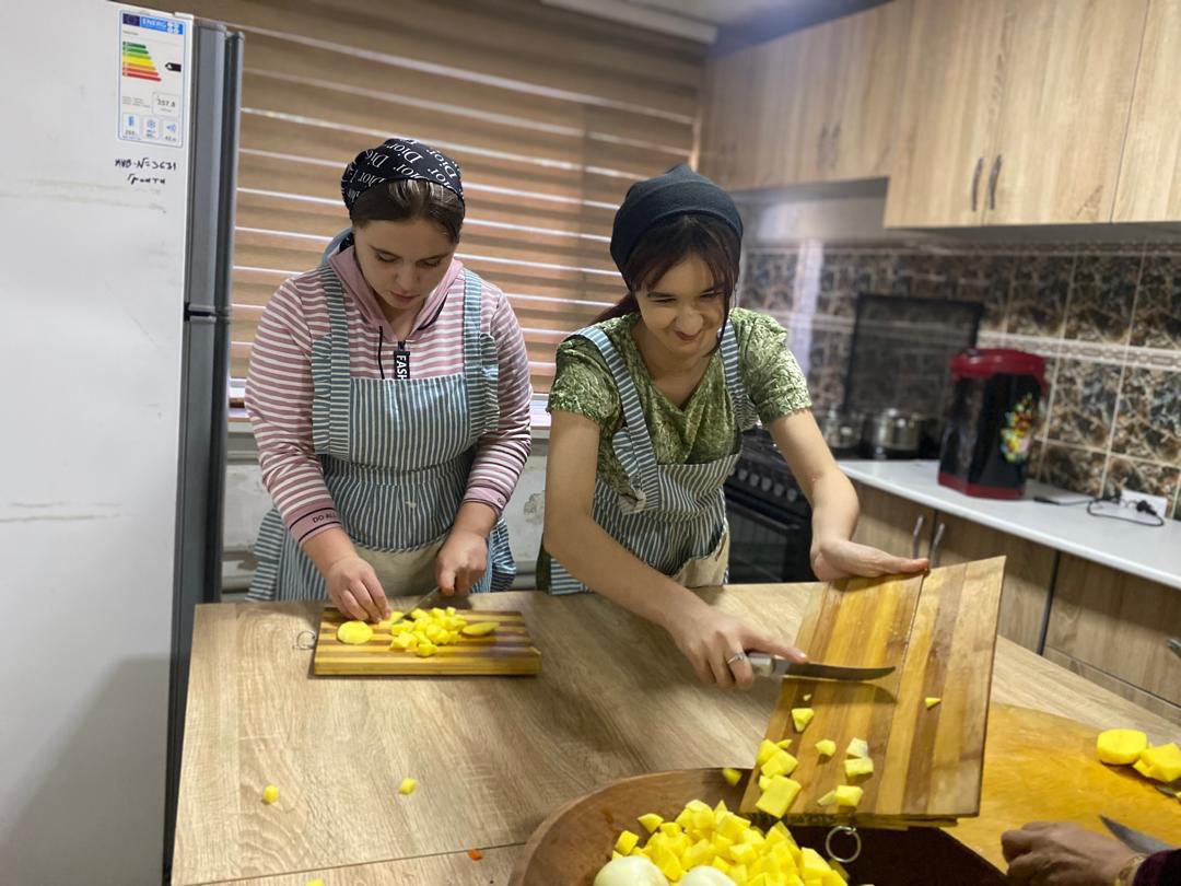 Сипас, духтарон хӯроки омодашударо дар косаҳо бардошта, ба болояш кабудӣ ва чаккаро мувофиқи табъашон ҳамроҳ намуда, бо хушҳолӣ ба бошандагони хобгоҳ - донишҷӯён тақсим намуданд.