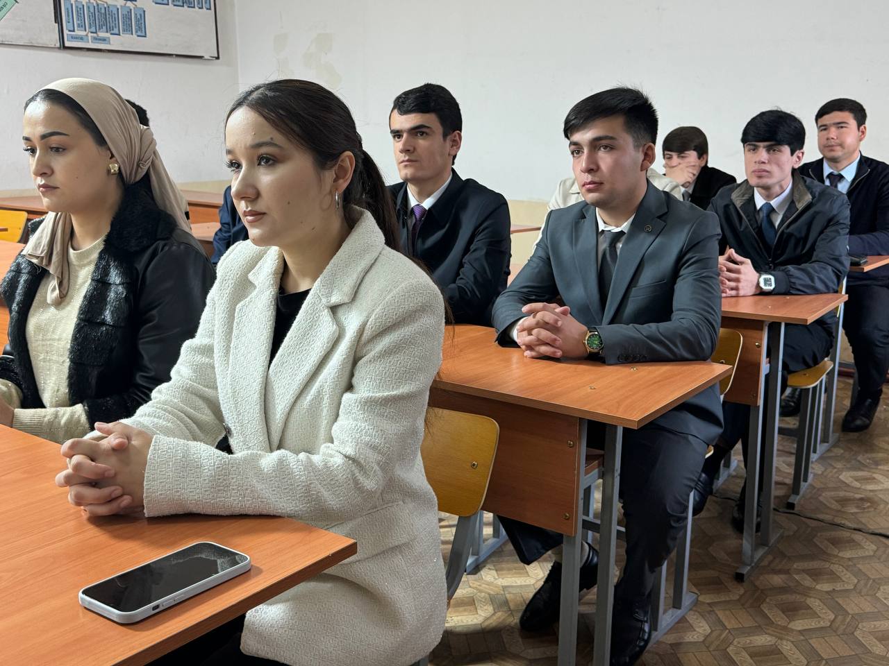Дар дарси кушод мудири кафедраи иқтисодиёти ҷаҳон ва муносибатҳои байналмилалӣ, н.и.и., дотсент Рустамзода Фитрат Музафар, муовини декан оид ба тарбия Фарҳод Шаропов, н.и.г, дотсент Амонатзода Маҳбуба Ато, ассистентони кафедра Ҳусниягул Раҳмоналиева, Саодат Абдуразоқова ва Идимоҳ Қурбонова ширкат варзиданд.