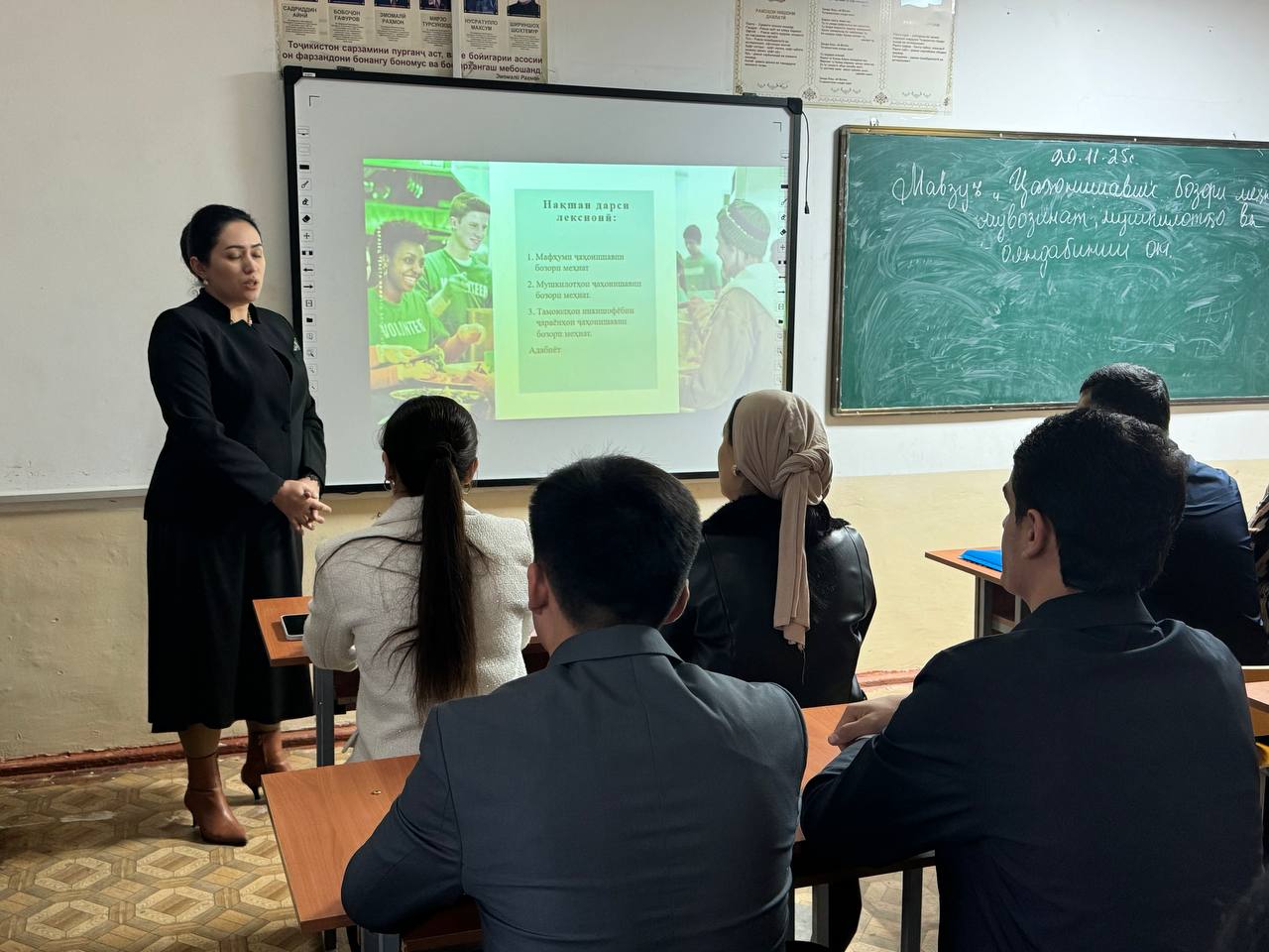 20-уми ноябри соли.2025 дарси кушоди намунавии омӯзгори кафедраи иқтисодиёти ҷаҳон ва муносибатҳои байналмилалӣ Назруллозода Майсара Назрулло дар мавзӯи “Ҷаҳонишавии бозори меҳнат: мувозинат, мушкилот ва ояндабинии он” барои донишҷӯёни курси 3-юми ихтисоси 23010103-ташкили робитаҳои байналмилалӣ бо истифода аз усулҳои фаъоли таълим ва воситаҳои техникии муосир баргузор гардид.