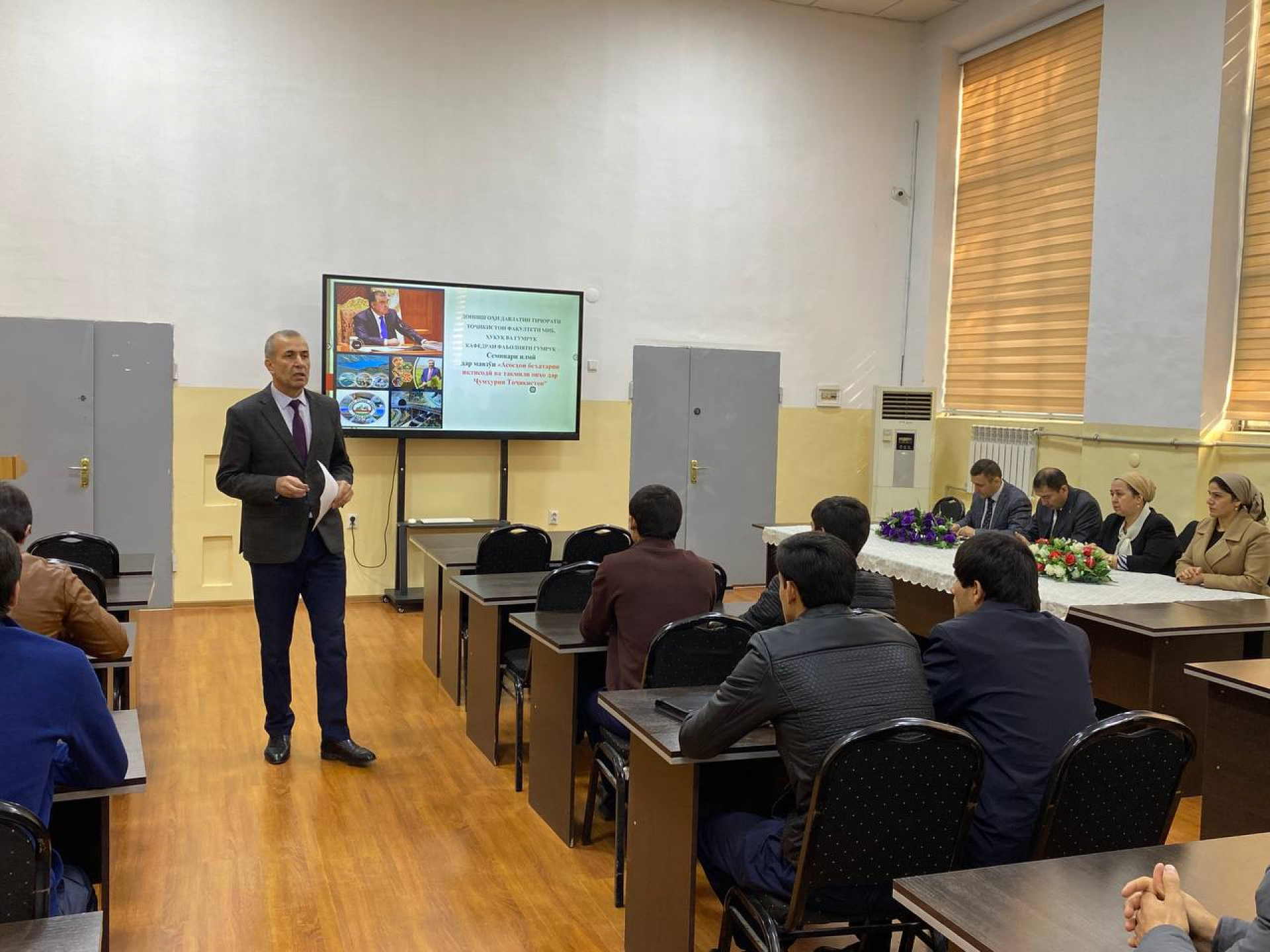 Сипас, дотсенти кафедра Парвиз Нидоев суханронӣ намуда, масъалаҳои такмили бехатарии иқтисодии Ҷумҳурии Тоҷикистонро дар заминаи ҳадафҳои стратегии мамлакат мавриди баррасӣ қарор дод.