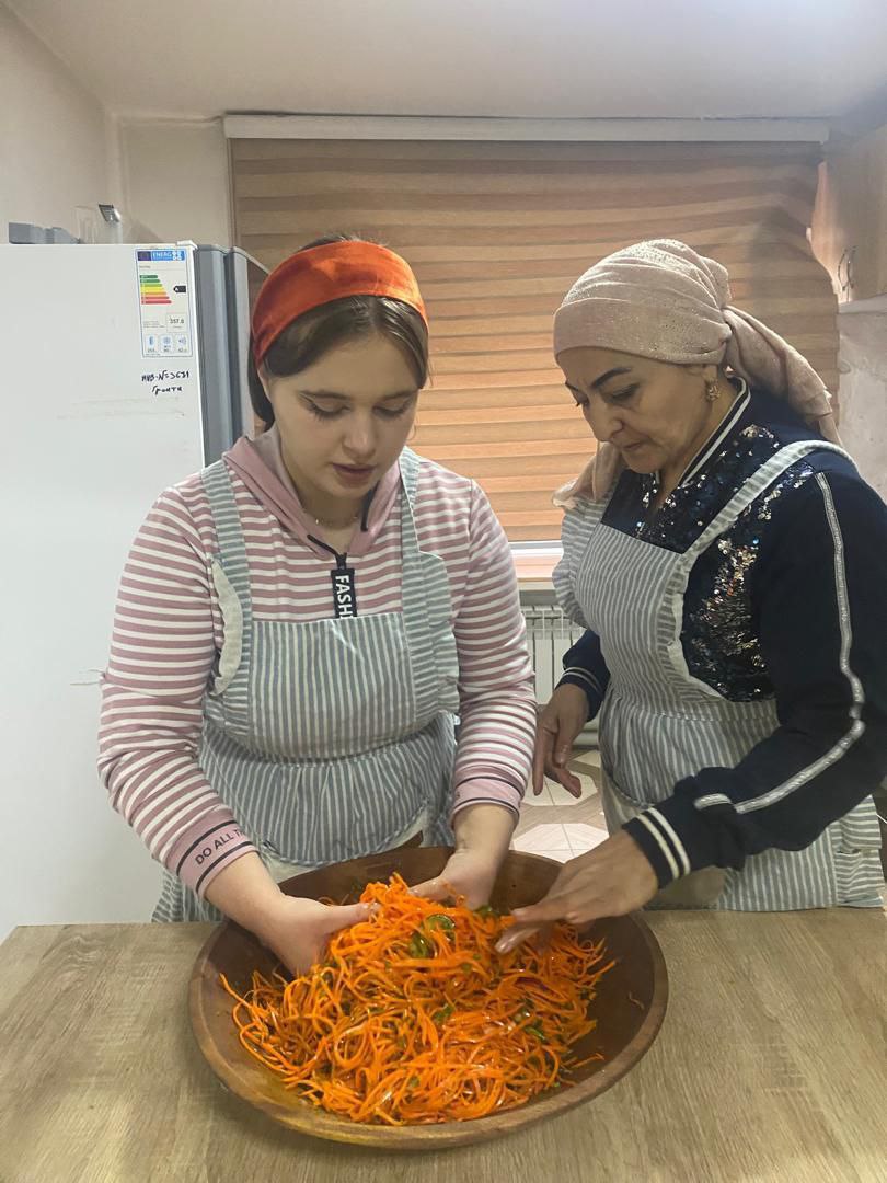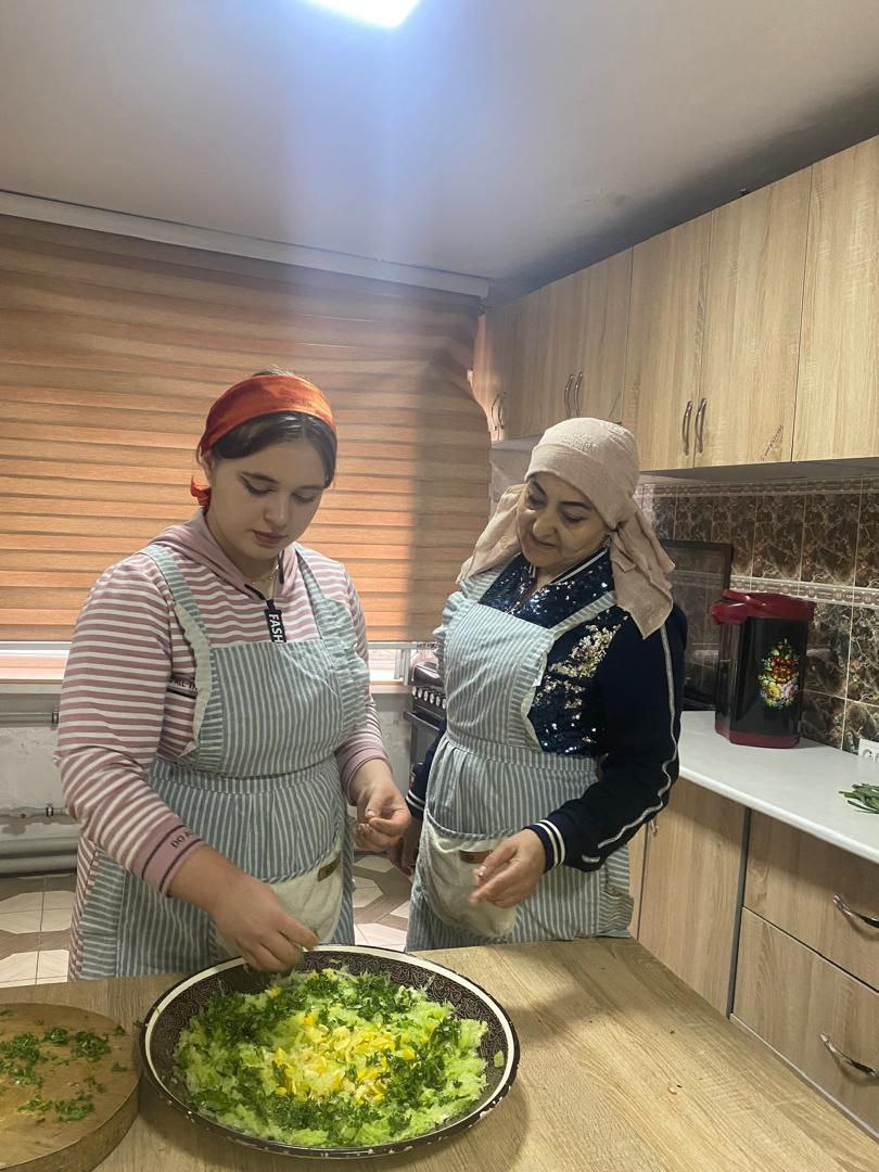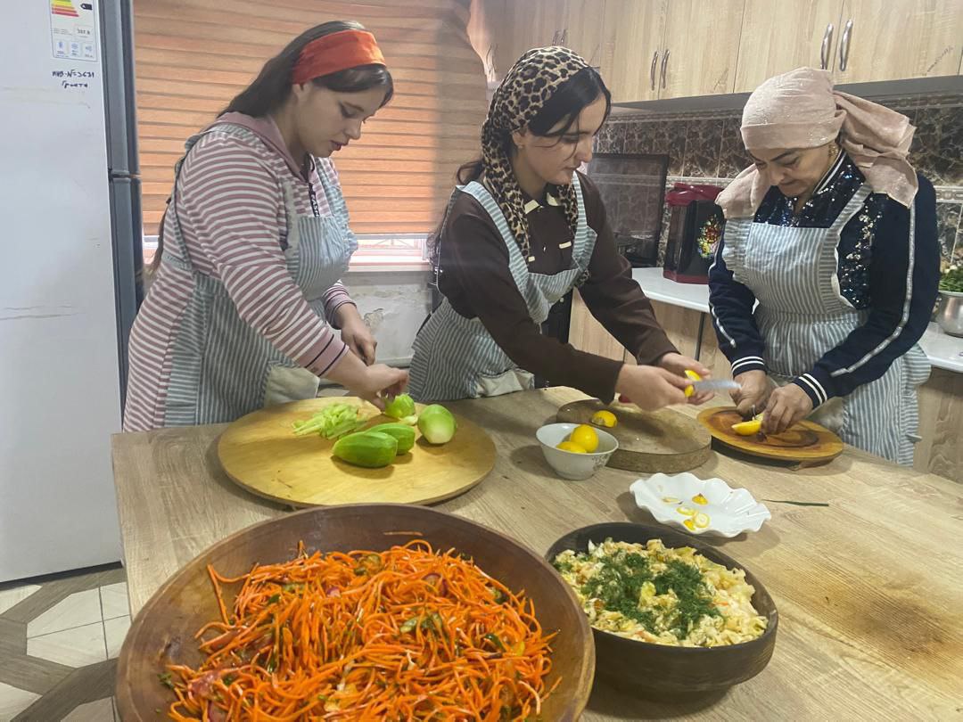 Донишҷӯдухтарони маскуни хобгоҳ Марямбону ва Мавзуна хӯроки миллӣ - оши палав ва Оишабону хӯришҳои мавсимиро омода намуданд.