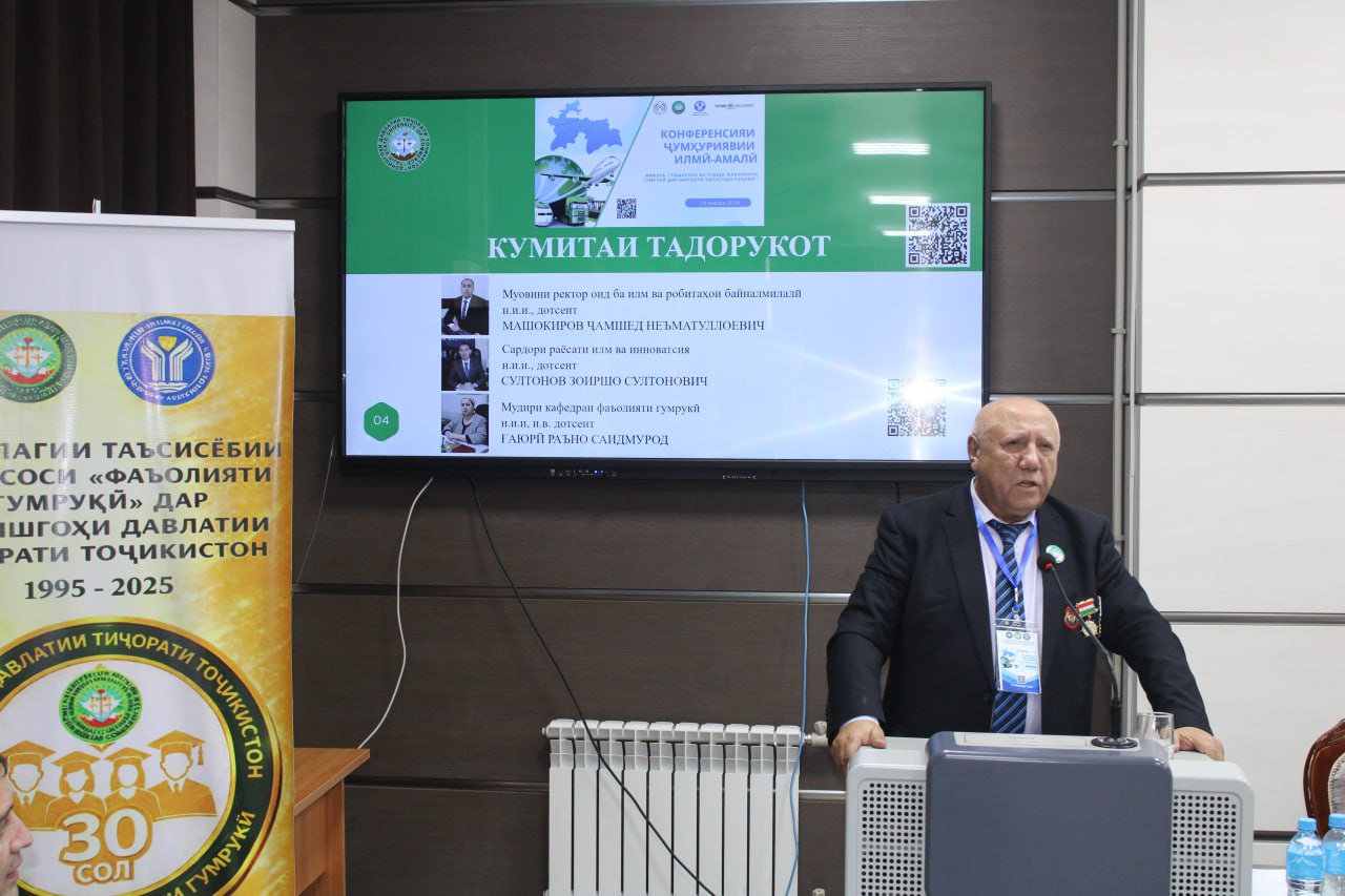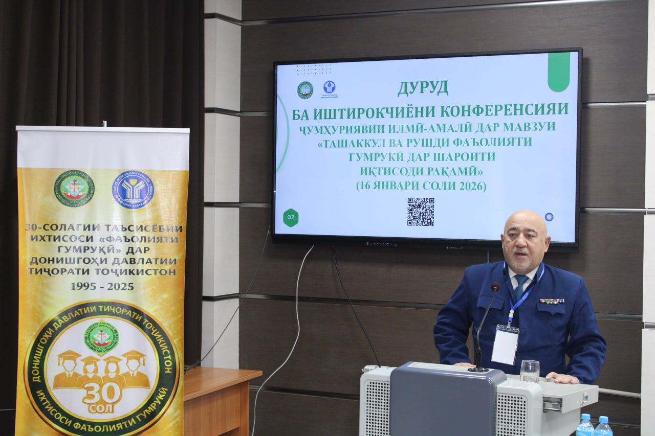 16-уми январи соли 2026 дар Донишгоҳи давлатии тиҷорати Тоҷикистон ба муносибати Рӯзи кормандони мақомоти гумрук, 34-солагии таъсисёбии Хадамоти гумруки назди Ҳукумати Ҷумҳурии Тоҷикистон ва 30-солагии таъсисёбии ихтисоси 960101 - хадамоти гумрукӣ Конференсияи ҷумҳуриявии илмию амалӣ дар мавзуи “Ташаккул ва рушди фаъолияти гумрукӣ дар шароити иқтисоди рақамӣ” баргузор гардид.