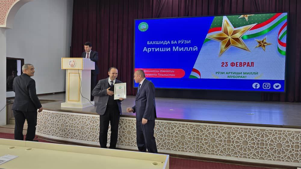 Дар идомаи ҷамъомад ба чанде аз омӯзгорони донишгоҳ барои саҳми арзанда дар таълиму тарбияи ҷавонон, иштироки фаъолона дар корҳои ҷамъиятию фарҳангӣ ифтихорномаҳои Раёсати донишгоҳ супорида шуданд.