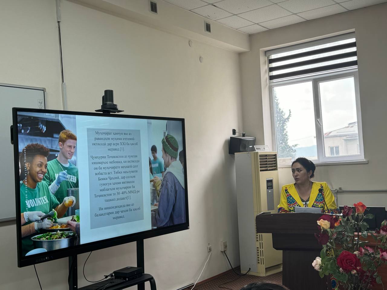 Сипас, дар идомаи кори бахш профессор Дустбоев Ш., дотсентон Назруллозода М.Н., Амонатзода М.А., Ҳомидов А.Н. ва омӯзгорон Давлатов Н.С., Сафаров У.Ш., Қурбонова И.Н. ва Иброҳимзода Г.Х. бо маърӯзаҳои пурмуҳтаво суханронӣ намуданд.