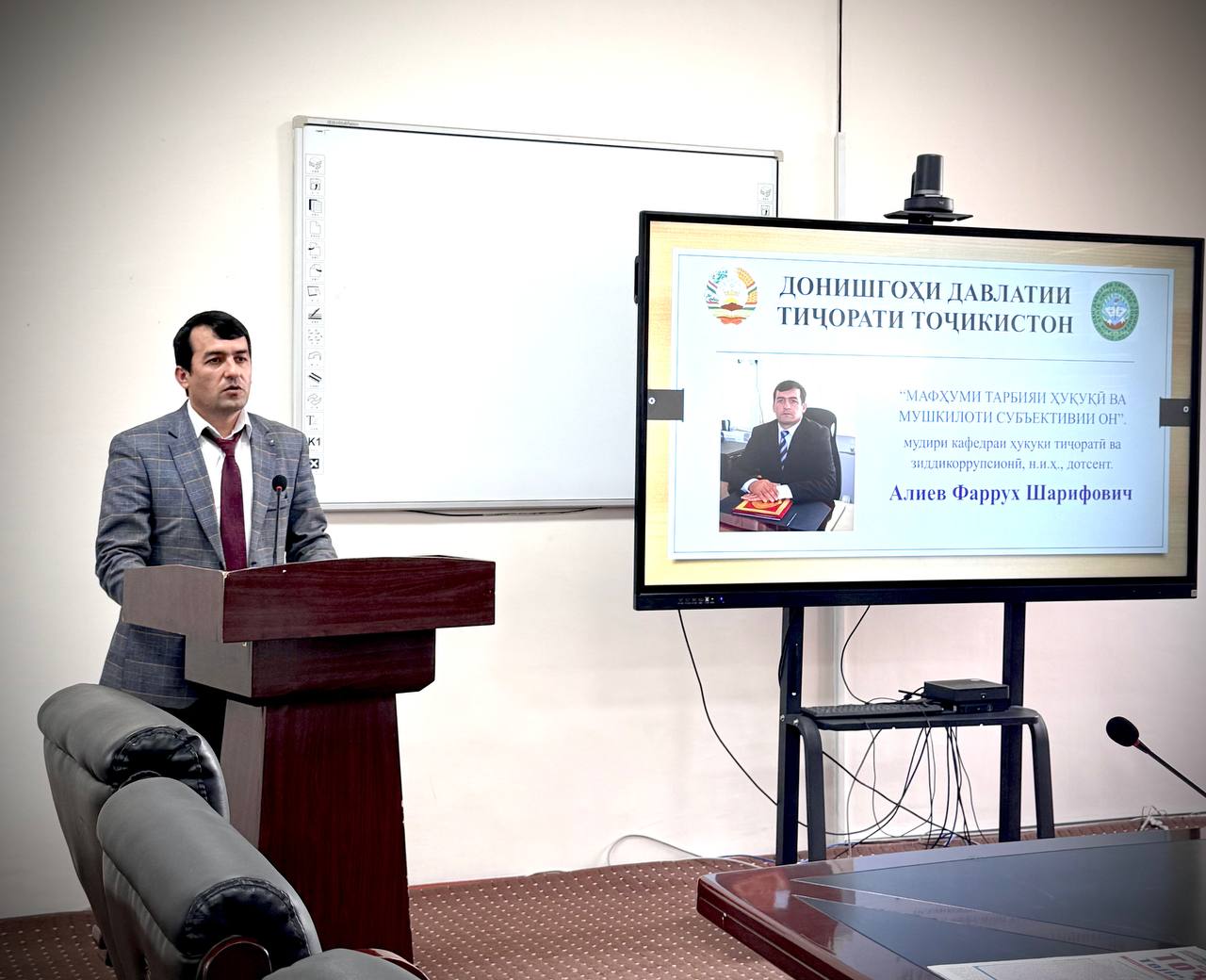 Конференсияи мазкурро мудири кафедра, н.и.ҳ., дотсент Алиев Ф.Ш. оғоз намуда, қайд намуд, ки воқеан мавзуъҳое, ки ба конференсия пешниҳод гардидаанд, мубрамият доранд ва метавонанд дар рушди илми ҳуқуқи ватанӣ ва қонунгузории миллӣ хизмат намоянд.