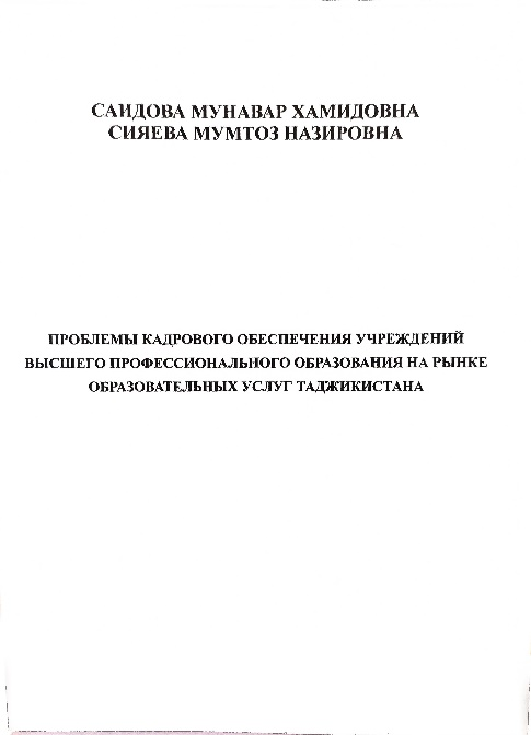 ПРОБЛЕМЫ КАДРОВОГО ОБЕСПЕЧЕНИЯ УЧРЕЖДЕНИЙ ВЫСШЕГО ПРОФЕССИОНАЛЬНОГО ОБРАЗОВАНИЯ НА РЫНКЕ ОБРАЗОВАТЕЛЬНЫХ УСЛУГ ТАДЖИКИСТАНА Монография. Саидова Мунавар Хамидовна, Сияева Мумтоз Назировна УДК: 338.45:338.465.4 (575.3) ISBN 978-99985-50-53-2 Нашриёт :«Абдураҳмон-Р» Саҳифа- 156с Соли нашр 2024. Проблемы кадрового обеспечения учреждений высшего профессионального образования на рынке образовательных услуг Таджикистана: монография. Под общей редакцией доктора экономических наук, профессора Факерова Х.Н. - Душанбе: «Абдураҳмон – Р». 2024. - 156с. В монографии исследованы теоретико-методические основы обеспечения учреждений высшего профессионального образования кадровым потенциалом в условиях рынка в Республике Таджикистан, рассмотрены рыночные концепции, а также выявлены особенности и проблемы обеспечения учреждений высшего профессионального образования кадрами. Проанализировано современное состояние и тенденции развития обеспечения учреждений высшего профессионального образования кадровым потенциалом в Республике Таджикистан. Дана оценка факторов, влияющих на формирование и использование кадрового потенциала в учреждениях высшего профессионального образования, кроме того, сформированы стратегии обеспечения учреждений высшего профессионального образования кадрами. Предложены приоритетные направления обеспечения учреждений высшего профессионального образования кадрами. Монография предназначена для докторантов, аспирантов, научных специалистов в сфере высшего профессионального образования и широкого круга читателей. |