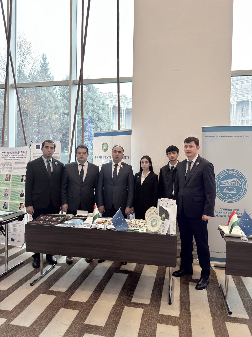 Аз номи ДДТТ муовини ректор оид ба илм ва робитаҳои байналмилалӣ Ҷамшед Машокиров дар мавзуи «Иқдомҳои амалкунандаи барномаи Erasmus +: таваҷҷуҳ ба раванди байналмилалии табодули академӣ ва фаъолияти Jean Monnet» маърӯза намуд. Зимни суханронӣ ӯ аз дастовардҳои донишгоҳ дар самти татбиқи лоиҳаҳои барномаи Erasmus+, аз ҷумла натиҷаҳои лоиҳаҳои ҷории CBHE – E4TLI (Technology Literacy and Inclusion), CIRCULEC (Development of Innovative Curricula and Modules in Circular Economy and Sustainable Development) ва дигар лоиҳаҳои амалкунанда ёдовар шуд.
