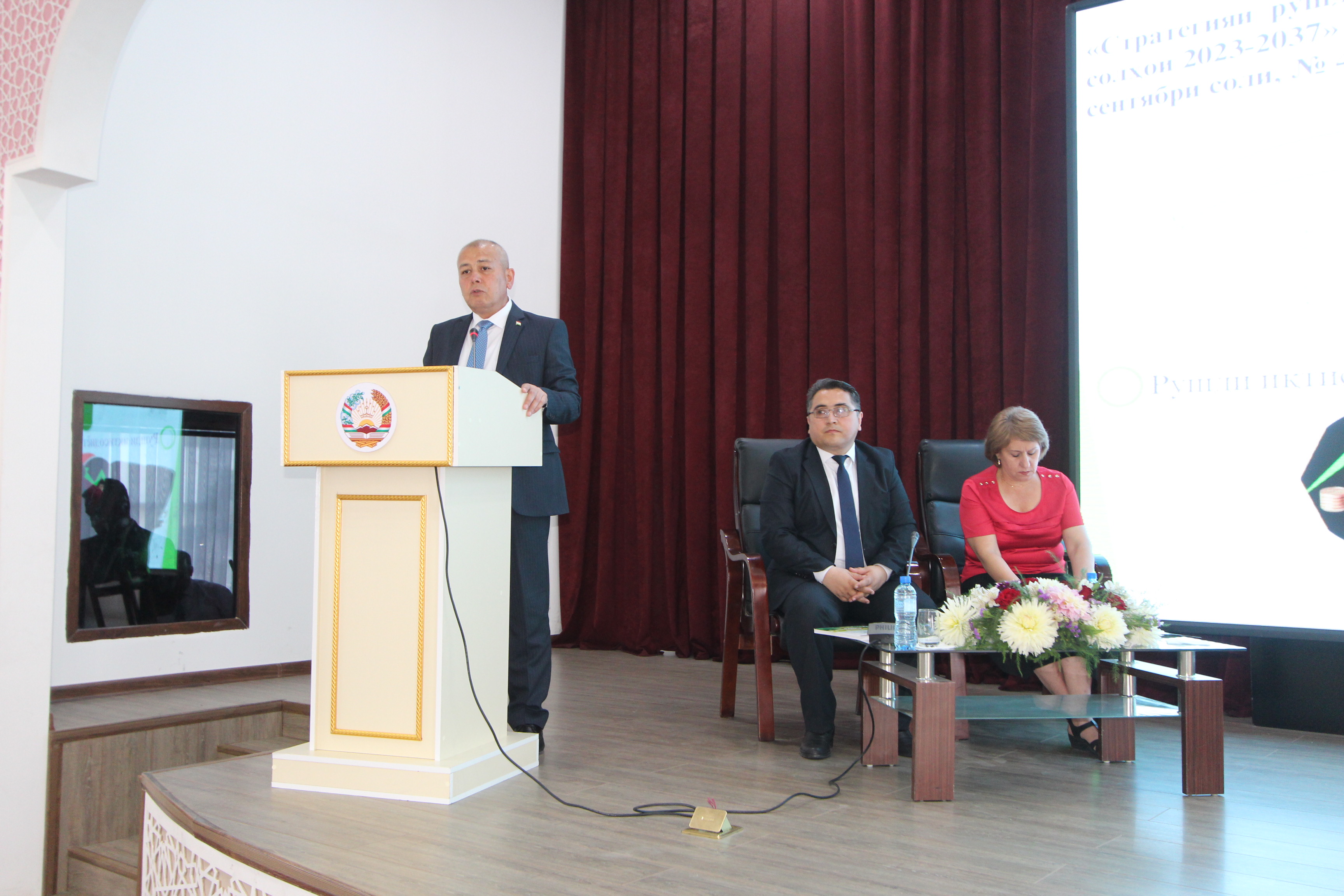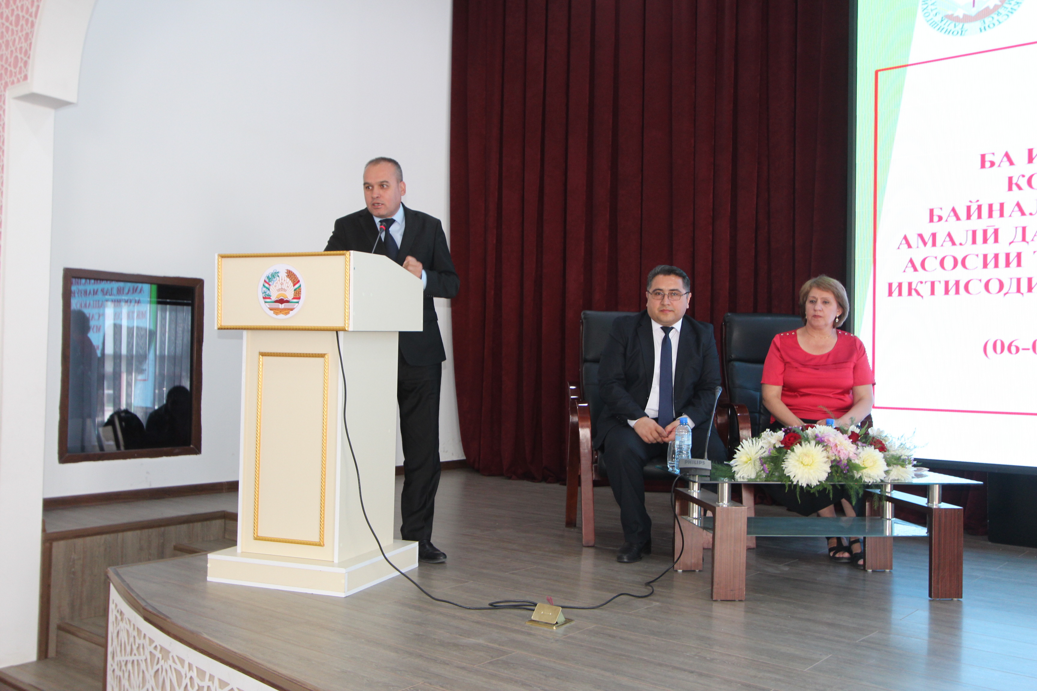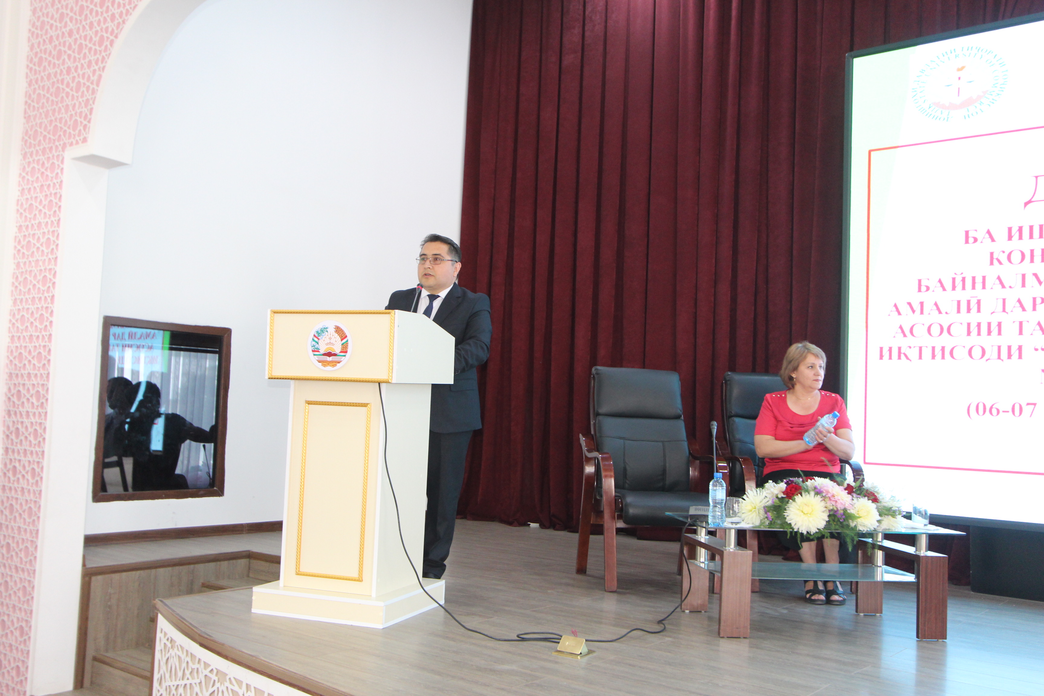 Конференсияро муовини ректор оид ба илм ва робитаҳои байналмилалӣ, доктори илмҳои иқтисодӣ Фарҳод Шаропов оғоз намуда, доир ба аҳаммияти мавзӯи матраҳшаванда сухан гуфт.
