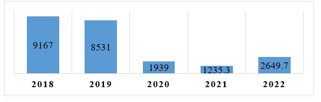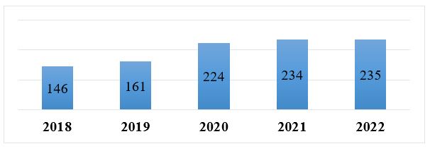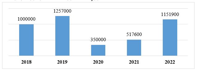 Расми 5. Шумораи сайёҳони дохилие, ки ба хориҷа сафар намуданд, (дар солҳои 2018-2022 нафар)
