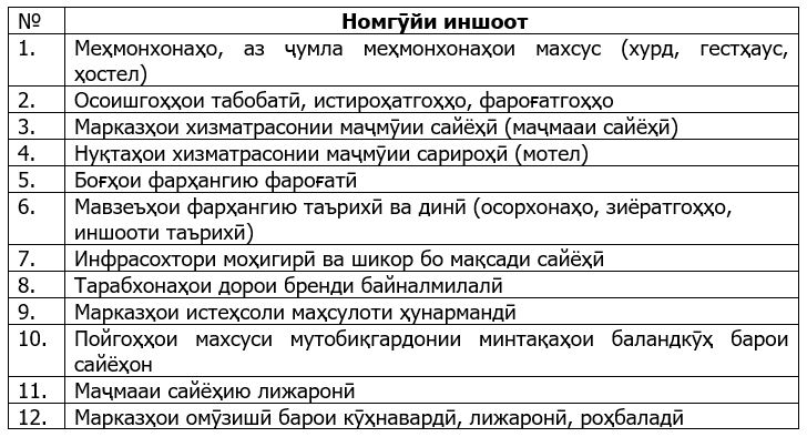 Рӯйхати иншоотҳои сайёҳӣ дар Ҷумҳурии Тоҷикистон