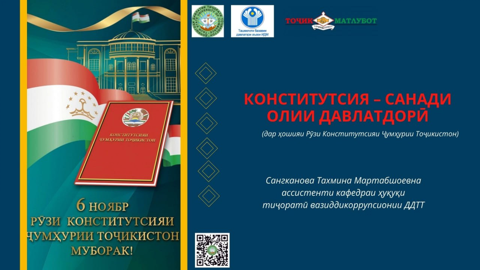 Тахмина Сангканова, ассистенти кафедраи ҳуқуқи тиҷоратӣ ва зиддикоррупсионии ДДТТ
