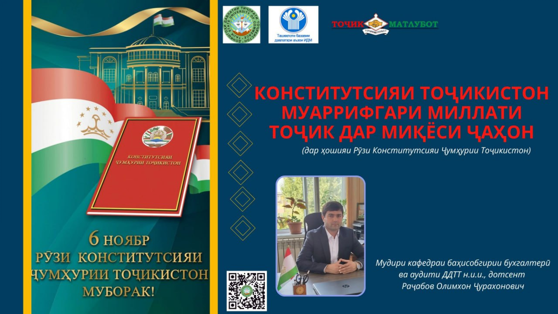 Конститутсия чун шиноснома муаррифгари миллату давлат дар арсаи байналмилалӣ баромад мекунад. Конститутсияи Ҷумҳурии Тоҷикистон, ки он 6-уми ноябри соли 1994 ба таври райъпурсии умумихалқӣ қабул гардидааст ва мо имрӯз 30 - солагии қабули онро ҷашн гирифта истодаем, қонунест, ки аз ҳамаи санадҳои меъёрии ҳуқуқӣ бартарӣ дорад. Ин муҳлат барои таърих тӯлонӣ нест, аммо дар ин муддати кӯтоҳ Қонуни асосӣ аз имтиҳони ҷиддии ҳаёт гузашт. Конститутсия асоси ифодакунандаи арзишҳои ҳуқуқӣ гардида, симои муосир ва таърихии Тоҷикистонро дар худ таҷҷасум намуд. Дар ин замина, он аввалин шуда кишвари моро ба қатори кишварҳои пешрафта ворид сохт. Асосгузори сулҳу ваҳдати миллӣ - Пешвои миллат, Президенти Ҷумҳурии Тоҷикистон муҳтарам Эмомалӣ Раҳмон чунин иброз доштанд, ки “Конститутсия ба сифати қонуни олӣ заминаҳои ҳуқуқии пешрафти ҷомеаро аз тариқи қабули қонунҳои нав гузошта, муносибатҳои ҷамъиятии мухталифро таҳти танзим қарор дода, асосҳои ҳуқуқии рушду такомули минбаъдаи чунин муносибатҳоро фароҳам меорад”.