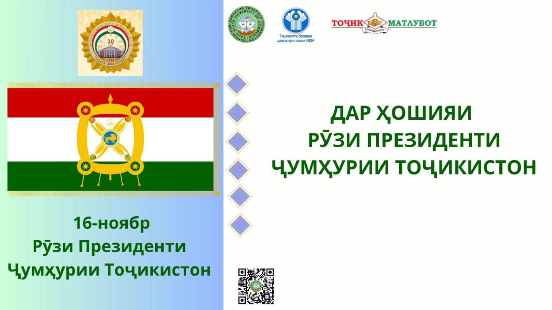 Дар кишвари мо ҳамасола 16-уми ноябр ҳамчун Рӯзи Президент бо назардошти саҳми беназиру арзанда ва хизматҳои бузурги Асосгузори сулҳу ваҳдати миллӣ - Пешвои миллат, Президенти Ҷумҳурии Тоҷикистон муҳтарам Эмомалӣ Раҳмон дар бунёд ва эҳёи низоми давлатдории миллӣ, барқарорсозии сохти конститутсионӣ, таъмини сулҳу ваҳдат ва баланд бардоштани нуфузу эътибори Тоҷикистон дар арсаи байналмилалӣ ҷашн гирифта мешавад.