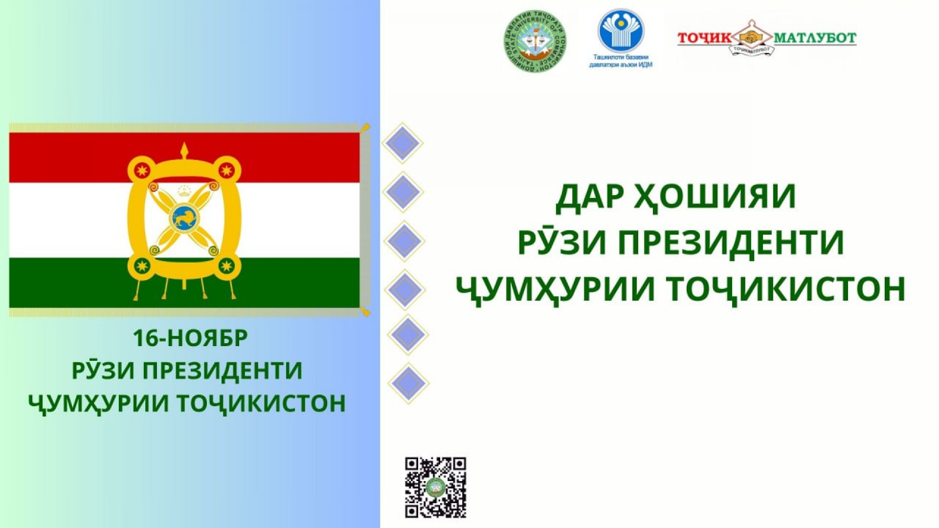 Мо мардуми тоҷик бояд ифтихор дошта бошем, ки халқу миллати мо таърихан ва табиатан сулҳдӯст, фарҳангпарвар ва созанда аст. Сулҳдӯстии мо дар тӯли тамоми таърихи чандинҳазорсолаамон нишондиҳандаи ақлу хирад ва сабру таҳаммули гузаштагонамон аст, ки ин далели қотеи фарҳанги қадима ва суннатҳои созандагии миллати мост ва мо ҷавонон инро бояд омӯзем, дар сиришти худ ҷой диҳем ва дар зиндагии ҳамарӯзаамон истифода намоем.