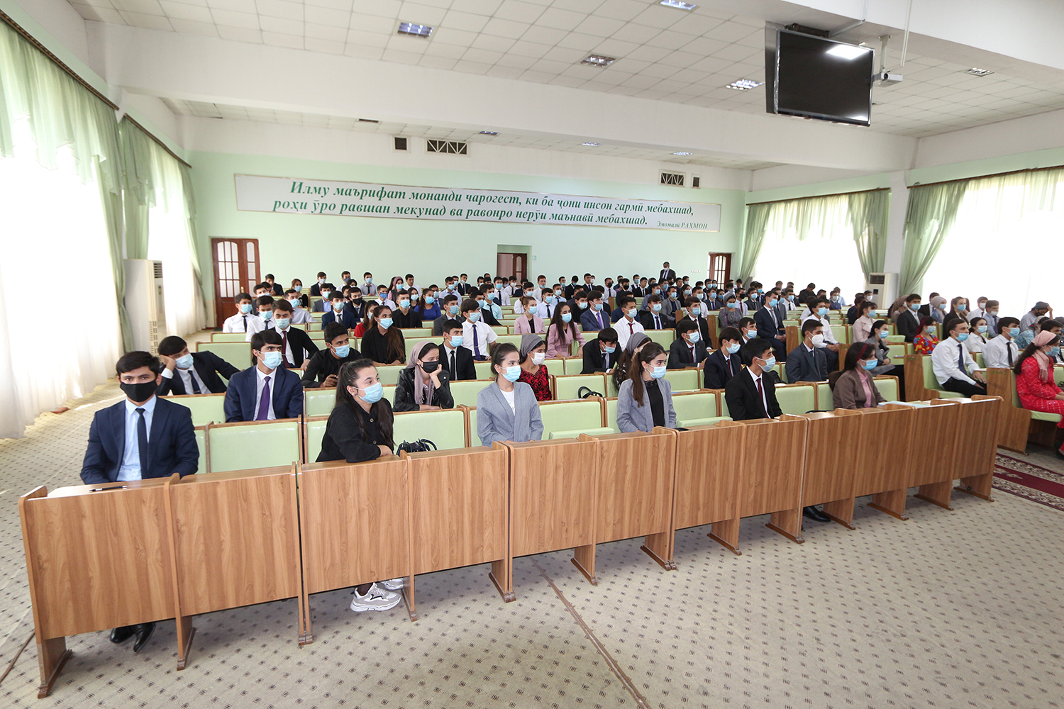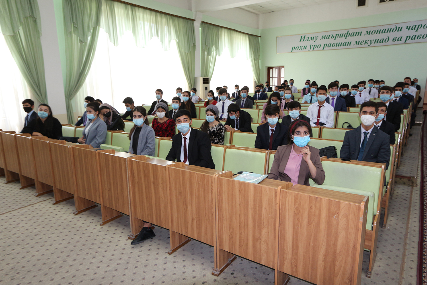 Чанде пеш дар толори асосии донишгоҳ маросими супоридани билети донишҷӯӣ ба донишҷӯёни соли аввали таҳсил баргузор гардид, ки дар он декани факултети муносибатҳои иқтисодии байналмилалӣ ва ҳуқуқ, дотсент Салимов Н.С., мудири кафедари иқтисоди ҷаҳон ва муносибатҳои байналмилалӣ, дотсент Қурбонова З.М., мудири кафедраи забони англисӣ ва робитаҳои байнифарҳангӣ Турди-Аханова И.А. иштирок карда, ба донишҷӯён хониши хубу аъло ва орзуҳои нек таманно намуданд.