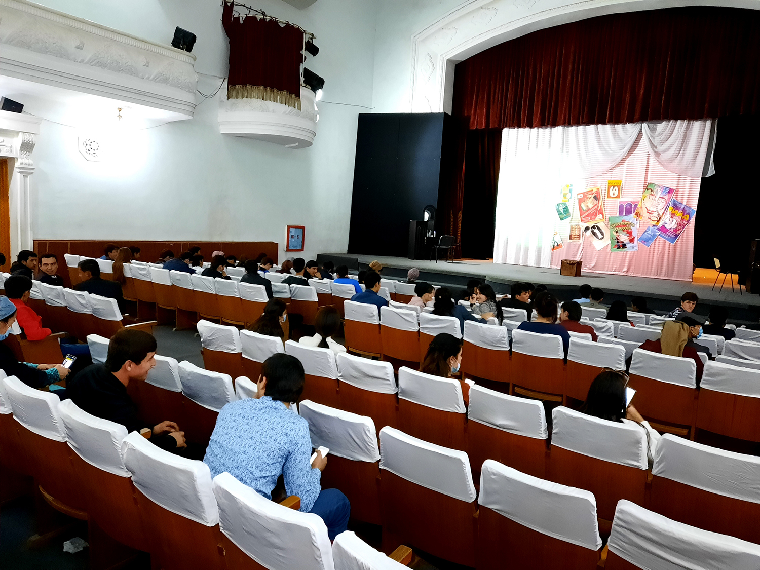 Бо ин мақсад рӯзи 3-юми ноябри соли ҷорӣ аҳли омӯзгорон ва донишҷӯёни донишгоҳ дар Муассисаи давлатии “Театри давлатии академии драмавии ба номи А.Лоҳутӣ” намоишномаи “Пизишки паррон”-ро тамошо намуда, аз он таассуроти нек бардоштанд. Тарҷумон, басаҳнагузоранда ва ороиши мусиқии «Пизишки паррон» Ҳунарпешаи халқии Тоҷикистон Қурбони Собир буда, нақшҳоро ҳунармандони шинохта ва соҳибистеъдод Саодат Азизова, Умед Бобомуродов, Шуҷоат Ҷалолиддинов, Иброҳим Илясов, Дилрабо Паллаева, Аъзам Розиқов ва Убайдулло Саъдуллоев дар сатҳи баланди касбӣ иҷро намуданд. Бояд гуфт, ки намоишномаро ҳунармандони ҷавони театр дар шакли нав, ба таври тоҷикона манзури тамошобин гардониданд. Намоишнома аз диди нав рӯйи саҳна омада, он як навъ дигаргуниро дар фаҳмиши асарҳои ишқӣ ба вуҷуд овардааст, яъне дар интиҳои намоишнома қаҳрамонҳо ба висоли якдигар мерасанд.