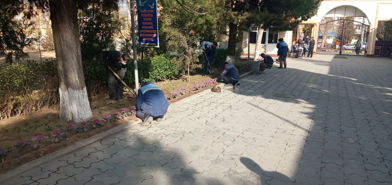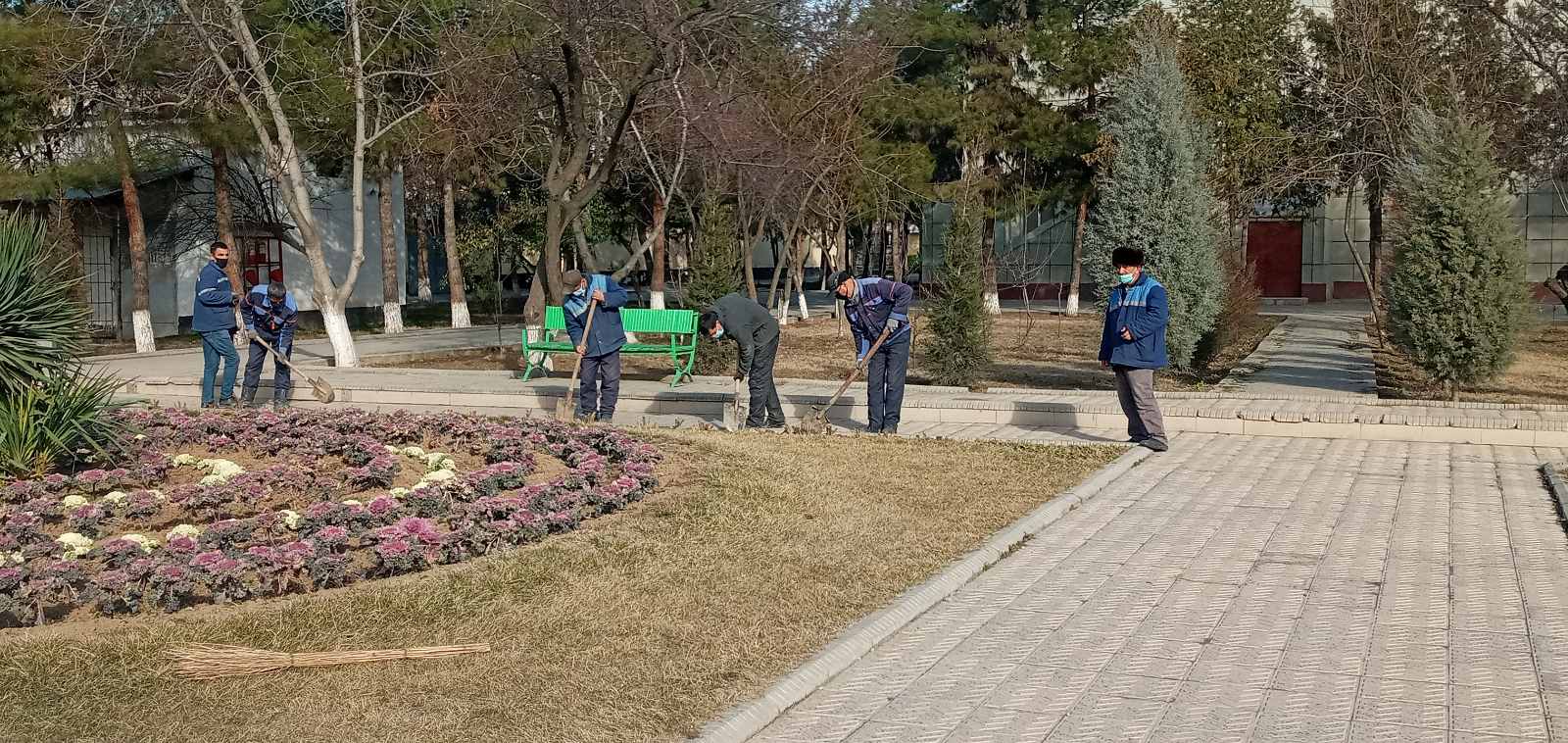 Дар шанбегӣ гирду атрофи дарахтони мевадиҳандаю сояафкан, ҷӯйбору роҳравҳо ва ҳудуди донишгоҳ тозаю озода карда шуда, ҳамзамон ба миқдори 520 бех гули лола шинонида шуд.