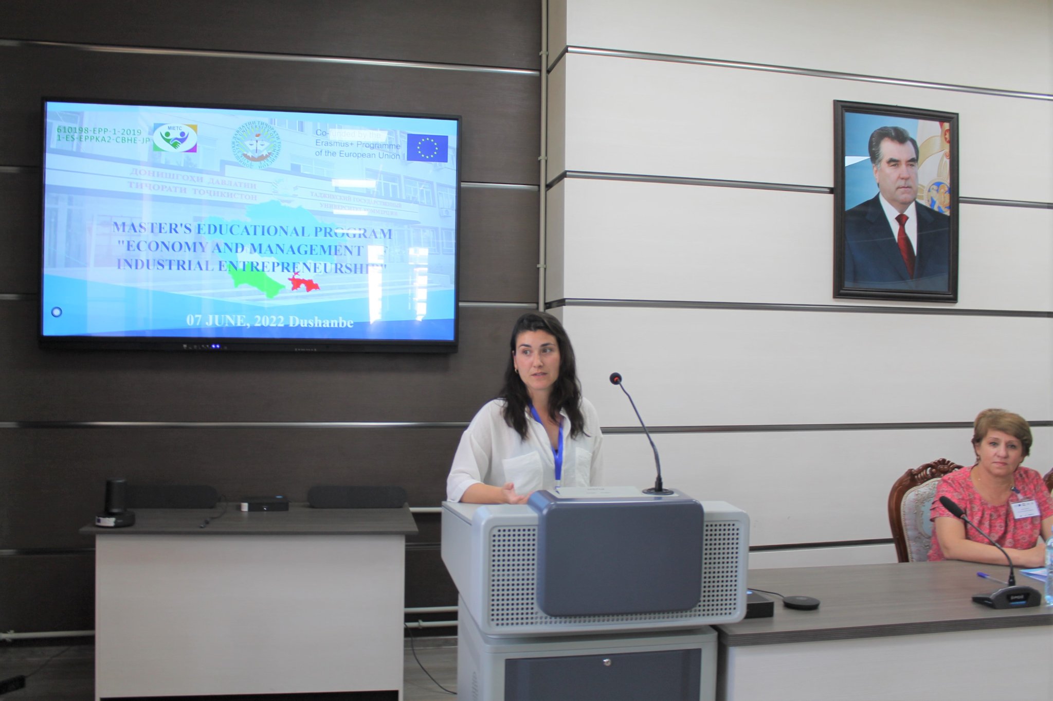 Семинарро бо сухани ифтитоҳӣ ба муовини ректор оид ба илм ва робитаҳои байналмилалӣ Фарҳод Шаропов оғоз намуда, ҳозиринро аз номи раёсати донишгоҳ ба Ҷумҳурии Тоҷикистон ва Донишгоҳи давлатии тиҷорати Тоҷикистон хайра мақдам гуфта, зарурат ва аҳамияти таҳия ва татбиқи барномаи магистрии идоракунии соҳибкории саноатиро хеле муҳим арзёбӣ намуд. Махсусан қайд гардид, ки мақсаду вазифаҳои лоиҳа бо ҳадафи навбатии стратегии ҷумҳурӣ, яъне саноатикунонии босуръати иқтисоди кишвар робитаи зич дошта, барои омода намудани мутахассисони ин соҳаи муҳим мусоидат хоҳад намуд.