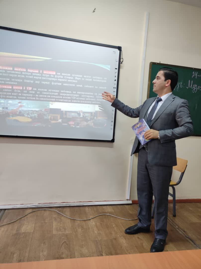 24-уми октябри соли 2024 дар кафедраи менеҷмент ва маркетинг тибқи нақшаи тасдиқгардида мизи мудаввар дар мавзуи “Мушкилоти рушди маркетинг дар Ҷумҳурии Тоҷикистон” баргузор гардид.