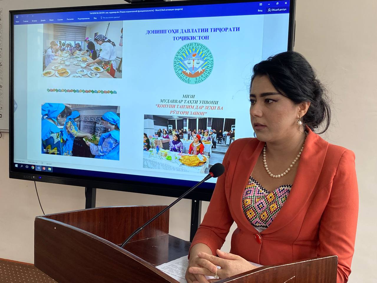 Сипас, мудири кафедраи фаъолияти гумрукӣ, н.и.и. Р. Ғаюрова, раиси бонувони факултети молия ва қарз, н.и.и. Шонаназарзода Н. Ш., дотсенти кафедраи фаъолияти бонкӣ М. Сафарова ва котиби комиссияи ҷамъиятӣ ҷиҳати татбиқи амалии Қонуни Ҷумҳурии Тоҷикистон “Дар бораи танзими анъана ва ҷашну маросим дар Ҷумҳурии Тоҷикистон” Ҷамила Ғафурова бо маърӯзаҳо баромад намуданд.