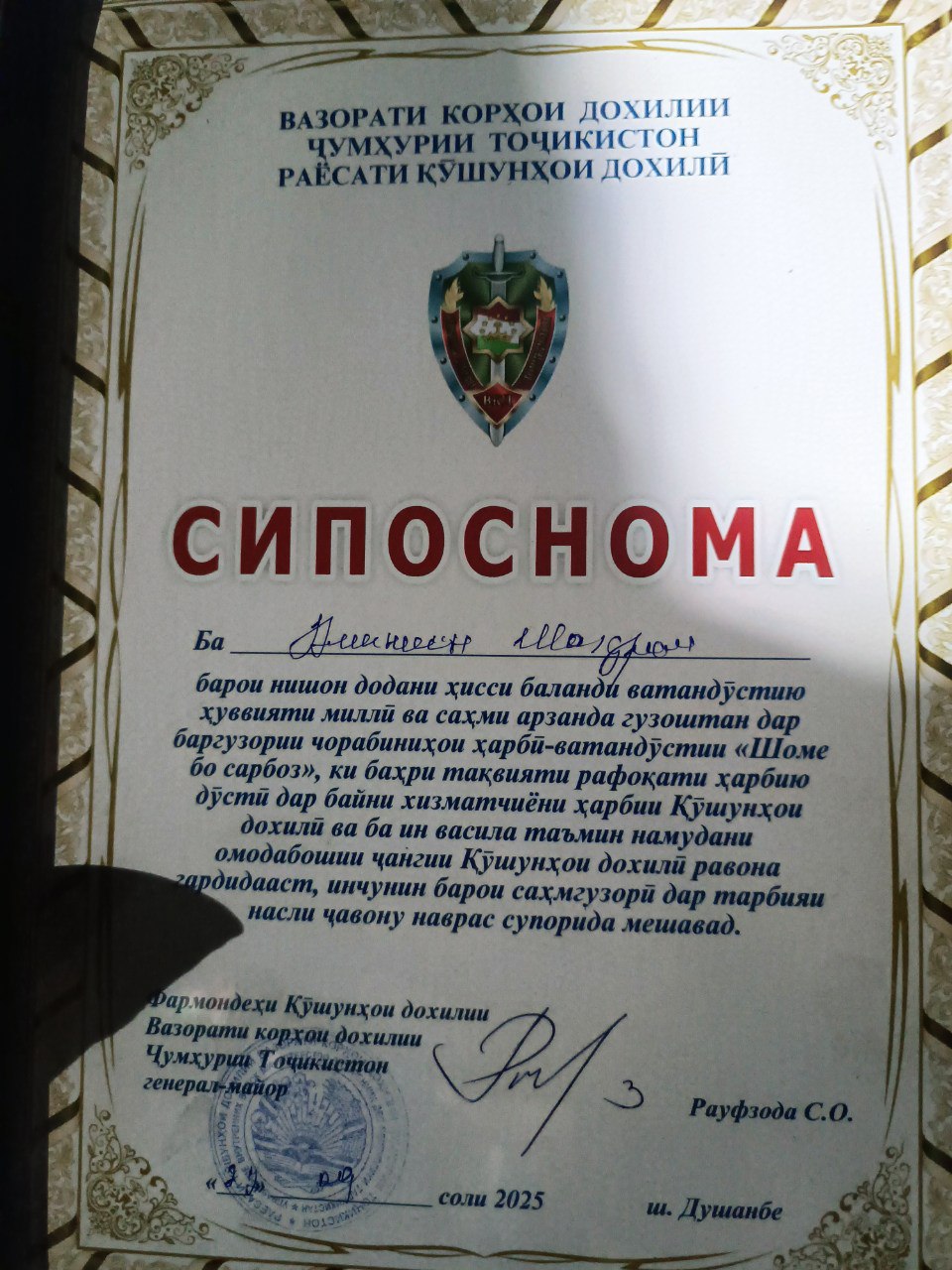 - Эмомиддинзода Акбар, донишҷӯи ихтисоси 25010731.
