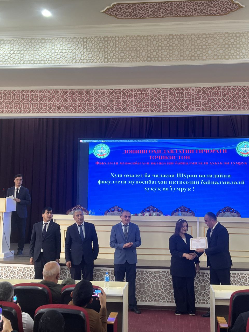 Дар чорабинӣ муовини якум, муовини ректор оид ба таълим Абдукарим Қурбонов, муовини ректор оид ба илм ва робитаҳои байналмилалӣ Ҷамшед Машокиров, сардори раёсати корҳои тарбиявӣ Сайфулло Авғонов, декани факултет Ҷовидон Сафаров ва зиёда аз 200 нафар волидайни донишҷӯён иштирок намуданд.