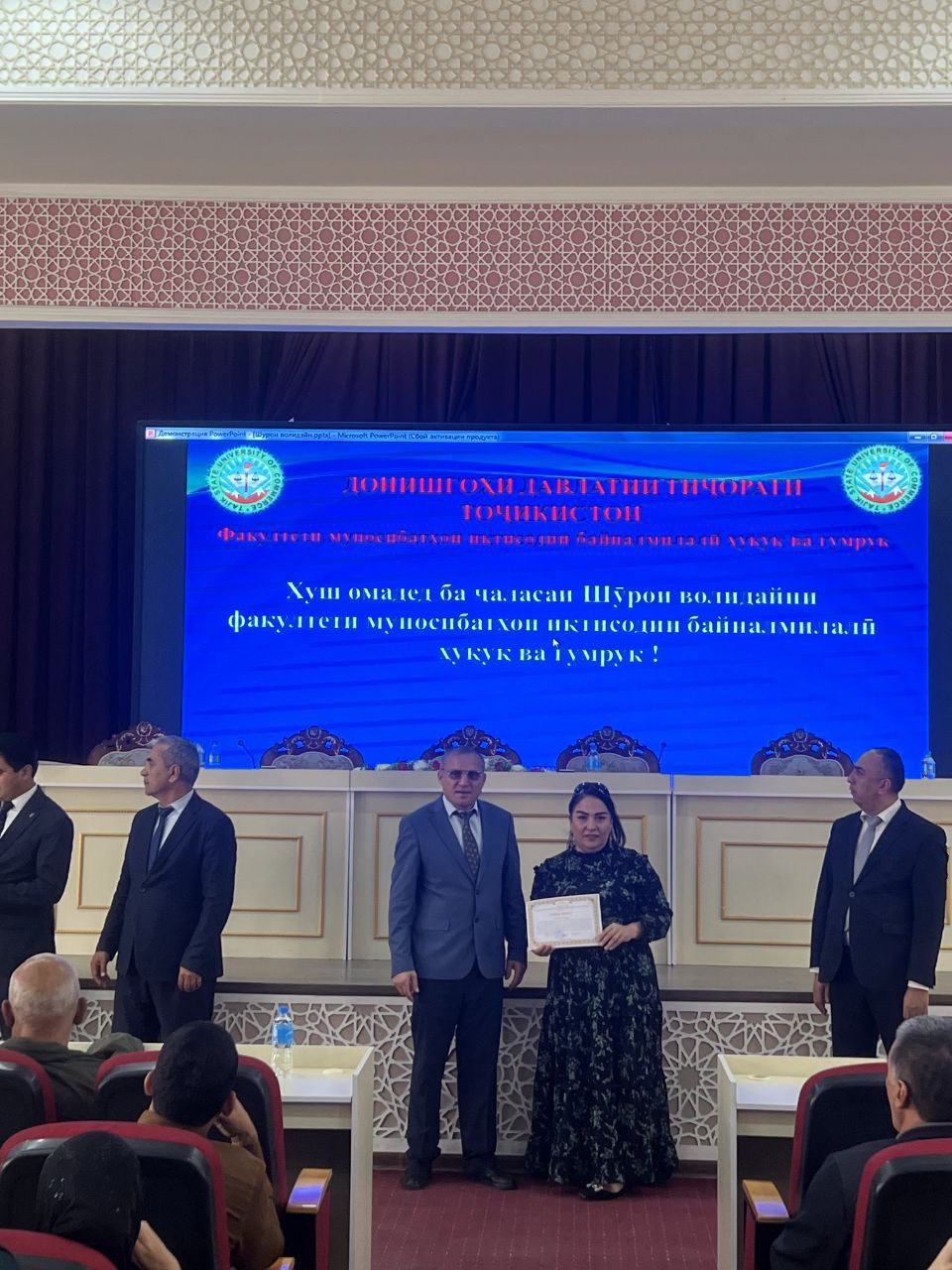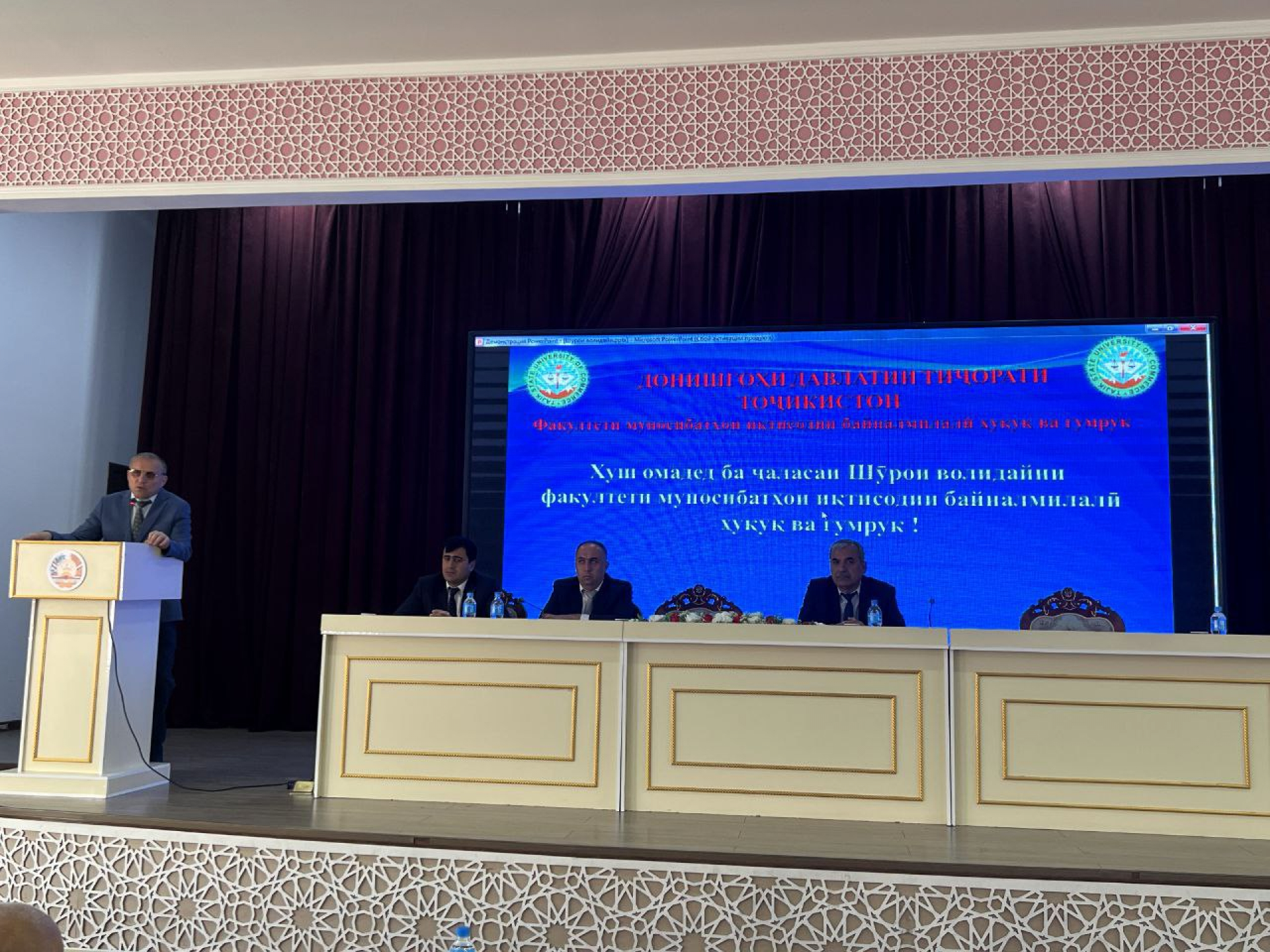 Рӯзи 20.10 2025 тибқи нақшаи чорабиниҳои корҳои тарбиявии факултети муносибатҳои иқтисодии байналмилалӣ, ҳуқуқ ва гумрук ҷиҳати иҷрои Қонуни Ҷумҳурии Тоҷикистон “Дар бораи масъулият барои таълиму тарбияи кӯдак” дар толори асосии Донишгоҳи давлатии тиҷорати Тоҷикистон ҷаласаи васеи Шурои волидайни донишҷӯён баргузор гардид.