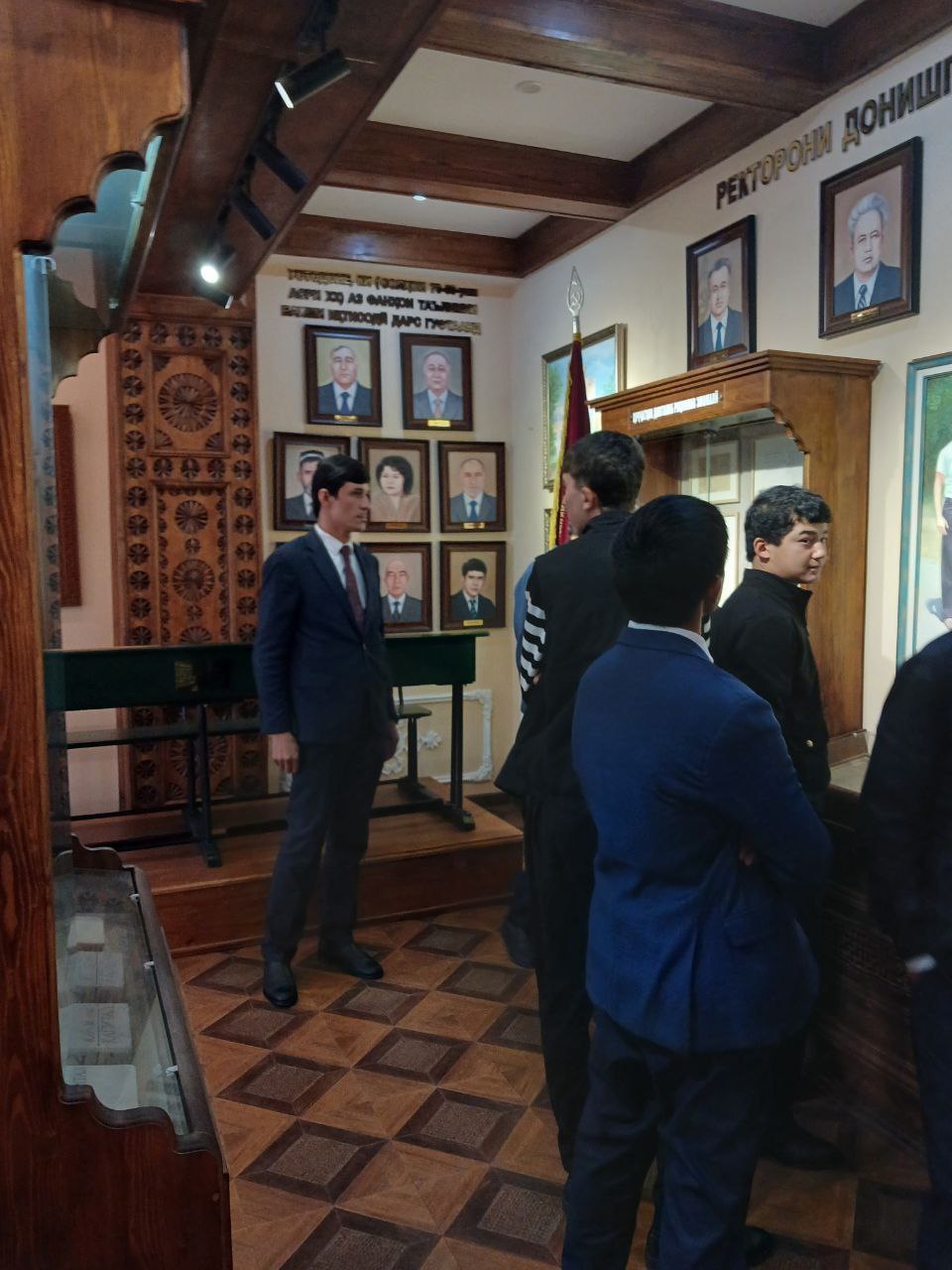 Дар Осорхонаи Пешвои миллат донишҷӯён бо ҳаёт ва фаъолият, асарҳо ва корномаи Асосгузори сулҳу ваҳдати миллӣ – Пешвои миллат, Президенти маҳбубамон муҳтарам Эмомалӣ Раҳмон шиносоӣ пайдо намуданд.