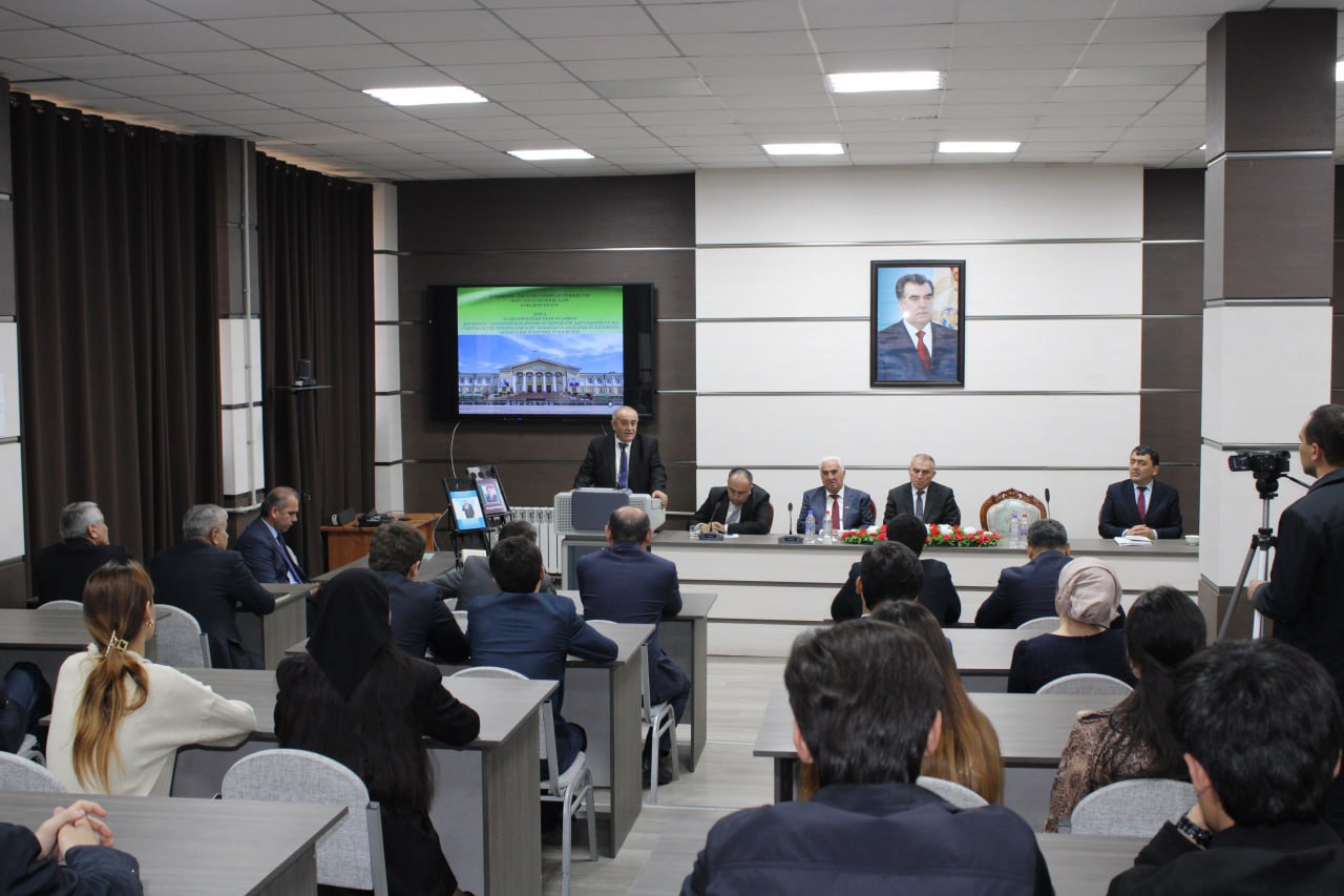 Мизи мудавварро муовини ректор оид ба илм ва робитаҳои байналмилалӣ, н.и.и., дотсент Ҷамшед Машокиров ҳусни ифтитоҳ бахшида, доир ба аҳаммияти таърихӣ ва сарнавиштсози Иҷлосияи XVI Шурои Олӣ барои халқи тоҷик ибрози андеша кард. Аз ҷумла, зикр гардид, ки Иҷлосияи XVI Шӯрои Олии Ҷумҳурии Тоҷикистон дар таърихи давлатдории навини мо саҳифаи сарнавиштсоз ба ҳисоб рафта, маҳз дар ҳамин иҷлосияи тақдирсоз бо иродаи қавии миллат ва роҳбарии хирадмандонаи Пешвои миллат муҳтарам Эмомалӣ Раҳмон заминаи барқароршавии сулҳ, ваҳдат ва рушди устувори давлат гузошта шуд.