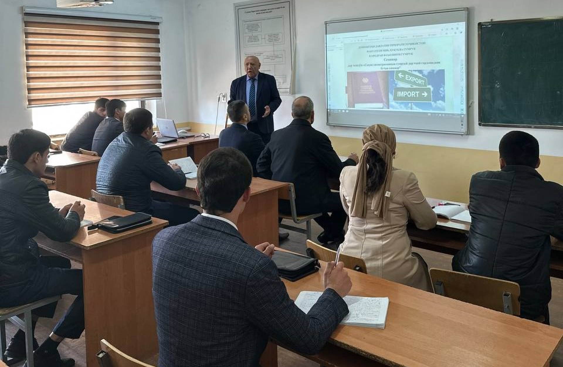 Рӯзи 12-уми ноябри соли 2025 дар кафедраи фаъолияти гумрукӣ семинари таълимӣ-методӣ дар мавзуи “Саҳми хизматрасониҳои гумрукӣ дар ғанӣ гардонидани буҷаи кишвар” бо иштироки омӯзгорони кафедра ва донишҷӯёни ихтисоси 960101 – хадамоти гумрукӣ баргузор гардид.