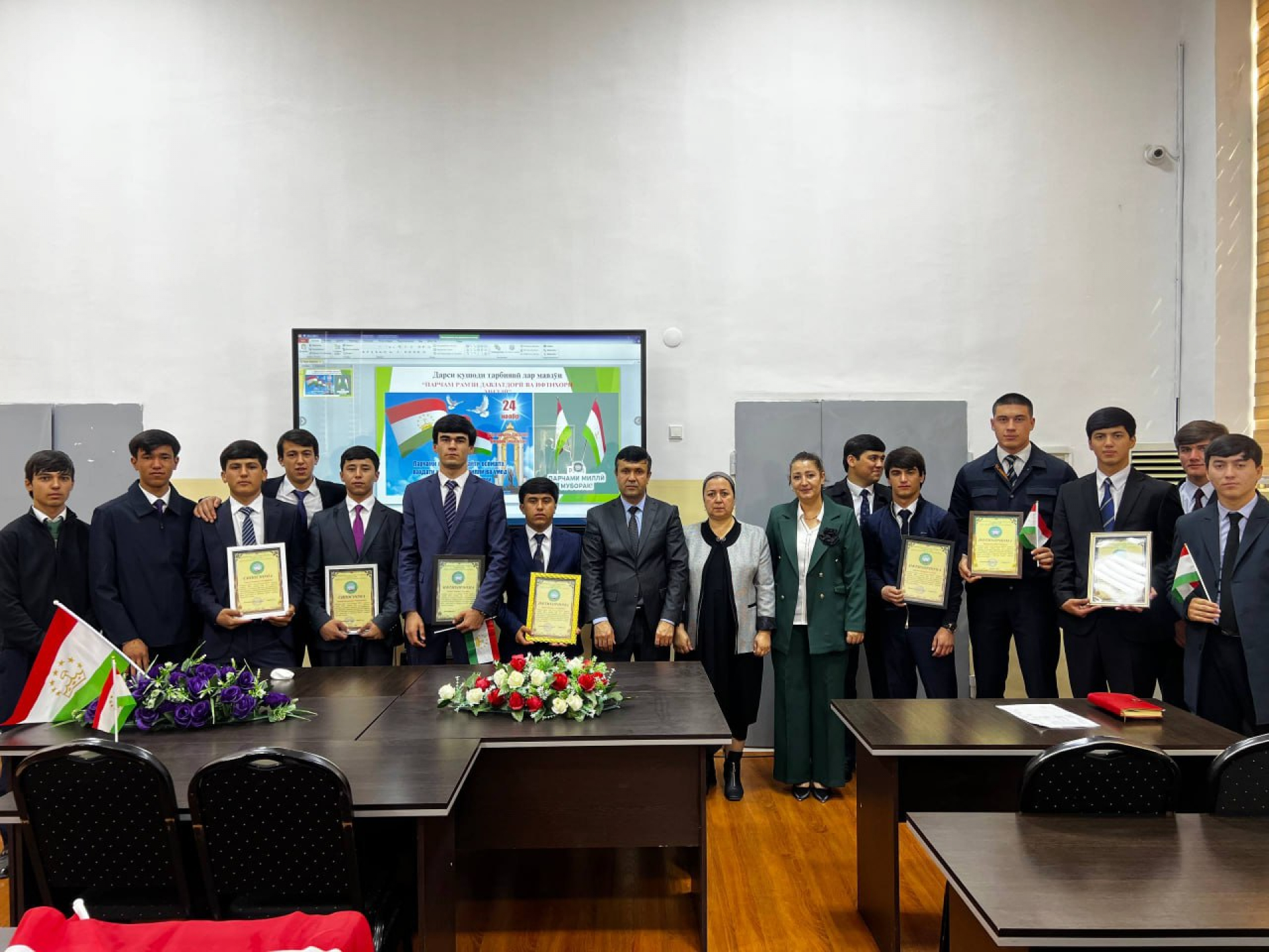 Дар хотима як зумра донишҷӯёни аълохон ва фаъол, ки дар чорабиниҳои таълимӣ, тарбиявӣ ва фарҳангии сатҳи донишгоҳӣ, ноҳиявӣ, шаҳрӣ ва ҷумҳуриявӣ фаъолона иштирок менамоянд, бо сипоснома ва ифтихорномаҳо қадрдонӣ карда шуданд.