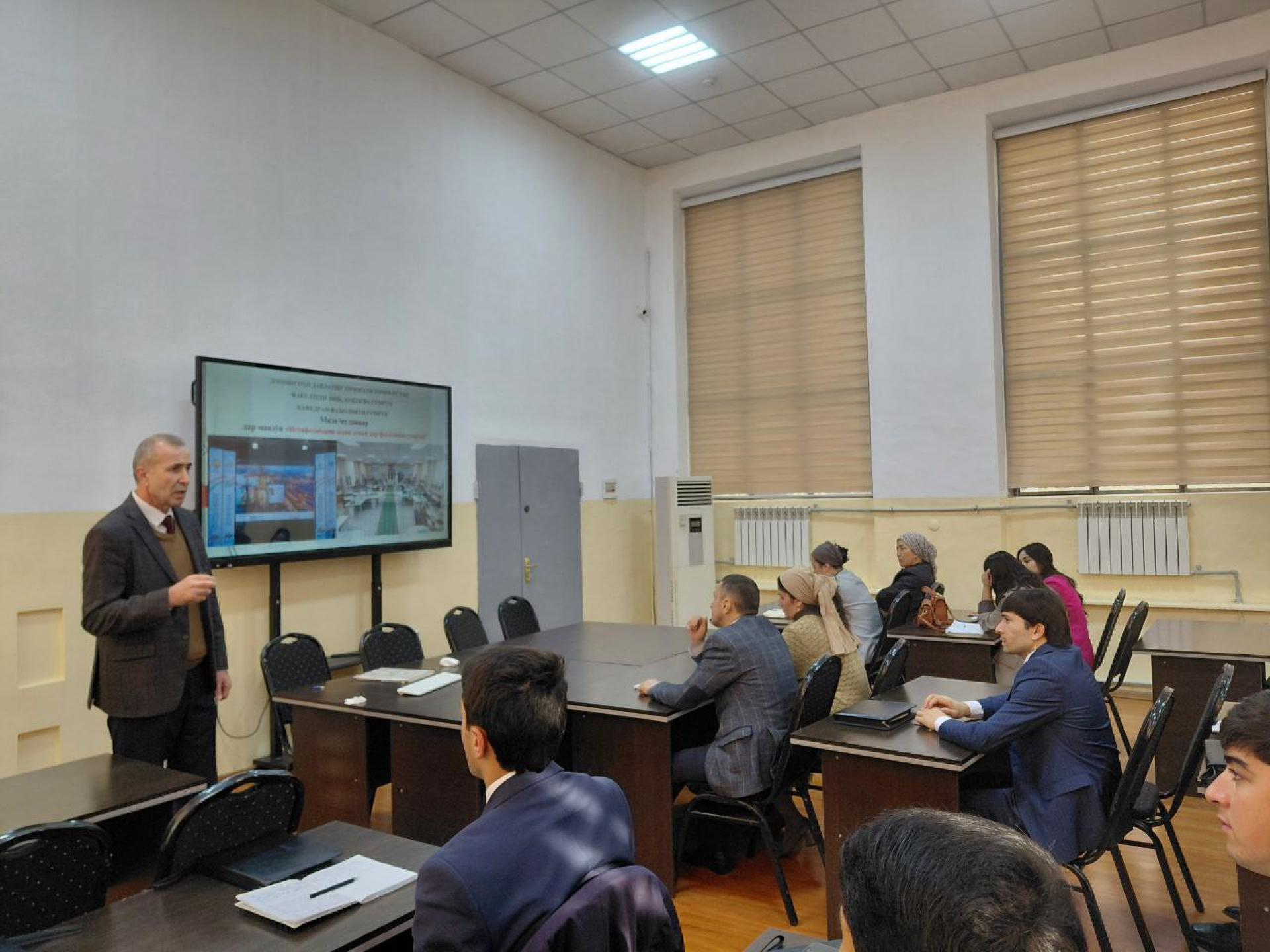 Мизи мудавварро дотсенти кафедра Муҳаммадҷон Алиев оғоз намуда, қайд кард, ки аз 1 октябри соли 2025 расмикунонии молҳои воридотию содиротӣ ва воситаҳои нақлиёт дар Ҷумҳурии Тоҷикистон тавассути низоми иттилоотии «АСИКУДА» (ASYCUDA) амалӣ мегардад.