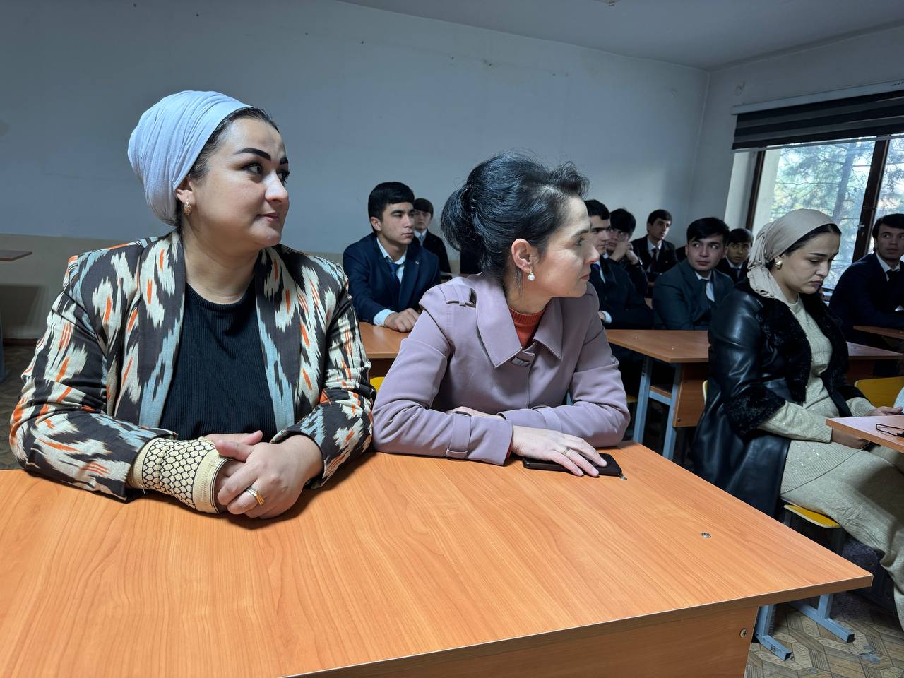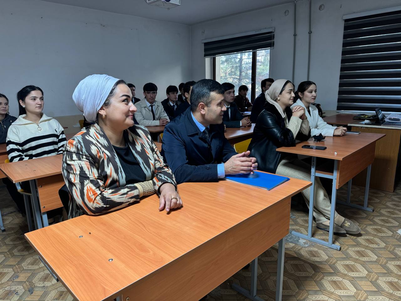 Дар дарси кушод мудири кафедраи иқтисодиёти ҷаҳон ва муносибатҳои байналмилалӣ, н.и.и., дотсент Рустамзода Фитрат Музафар, муовини декан оид ба тарбия Фарҳод Шаропов, н.и.г, дотсент Амонатзода Маҳбуба Ато, ассистентони кафедра Ҳусниягул Раҳмоналиева, Саодат Абдуразоқова ва Идимоҳ Қурбонова ширкат варзиданд.