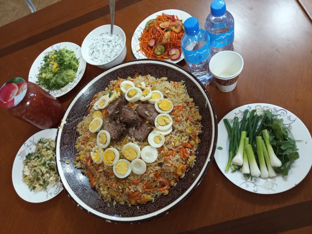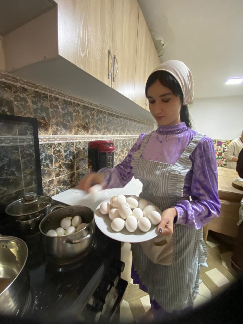 Донишҷӯдухтарони маскуни хобгоҳ Марямбону ва Мавзуна хӯроки миллӣ - оши палав ва Оишабону хӯришҳои мавсимиро омода намуданд.