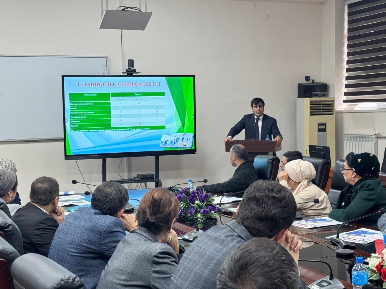 Сипас, Ҷовидон Сафаров оид ба фаъолияти илмӣ-таҳқиқотӣ ва инноватсионии факултет дар соли 2025 ва вазифаҳо барои соли 2026 ба таври муфассал ҳисобот пешниҳод намуд.