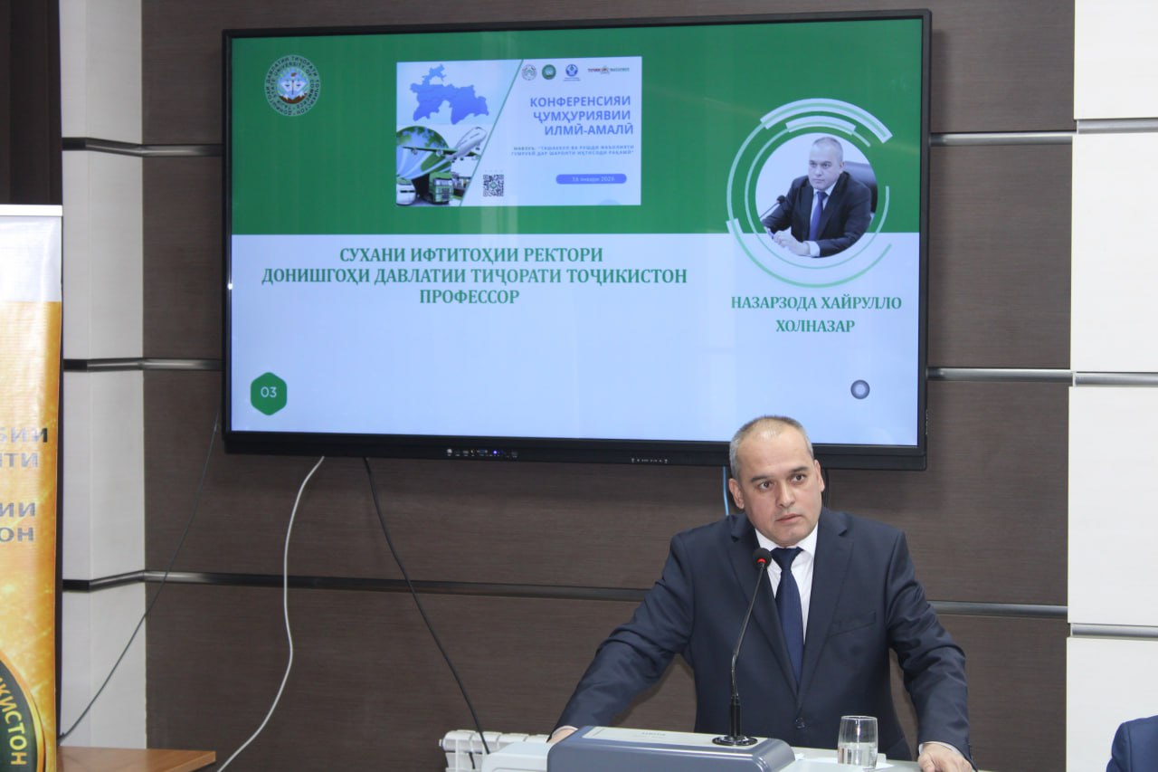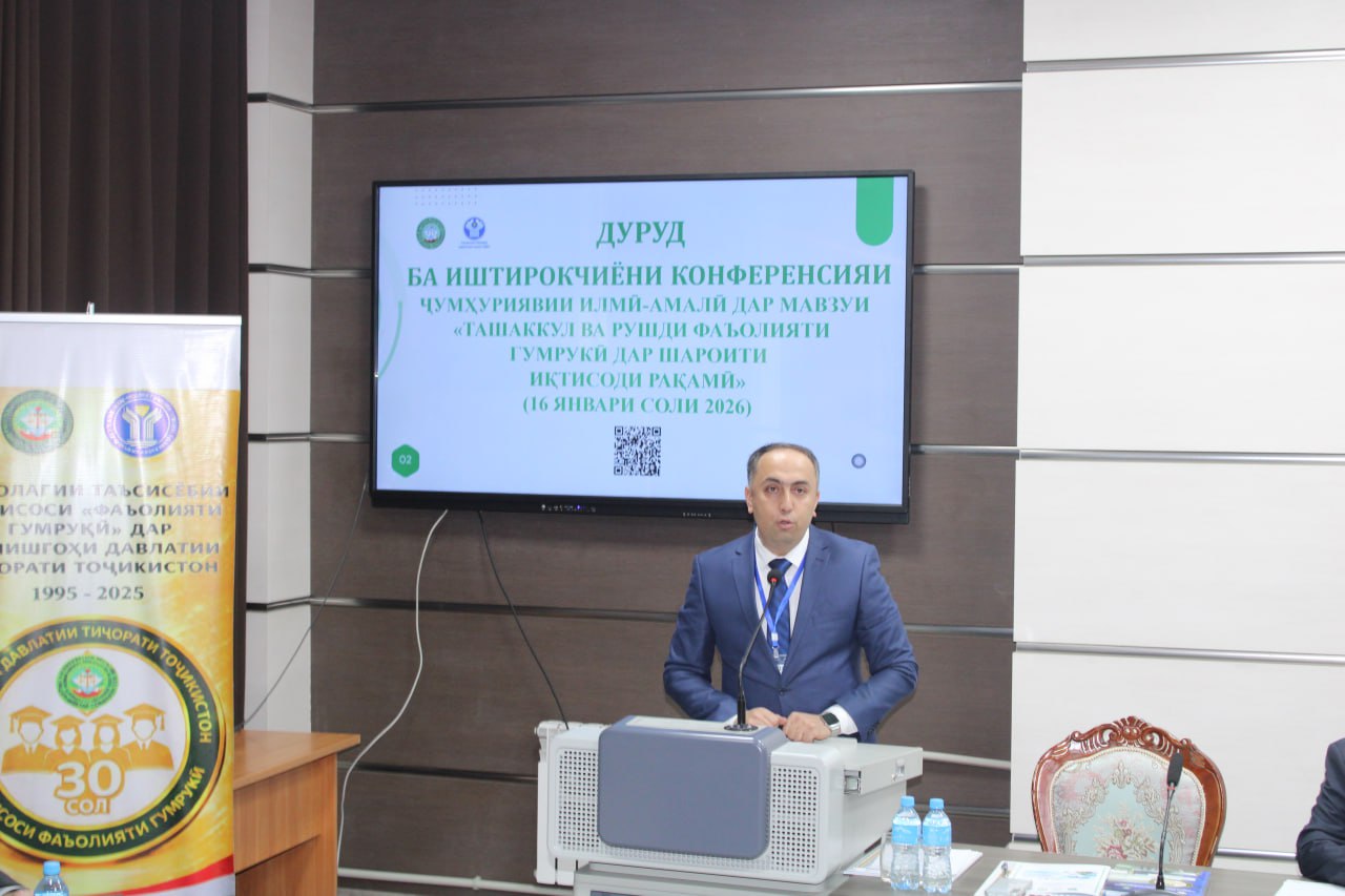 16-уми январи соли 2026 дар Донишгоҳи давлатии тиҷорати Тоҷикистон ба муносибати Рӯзи кормандони мақомоти гумрук, 34-солагии таъсисёбии Хадамоти гумруки назди Ҳукумати Ҷумҳурии Тоҷикистон ва 30-солагии таъсисёбии ихтисоси 960101 - хадамоти гумрукӣ Конференсияи ҷумҳуриявии илмию амалӣ дар мавзуи “Ташаккул ва рушди фаъолияти гумрукӣ дар шароити иқтисоди рақамӣ” баргузор гардид.