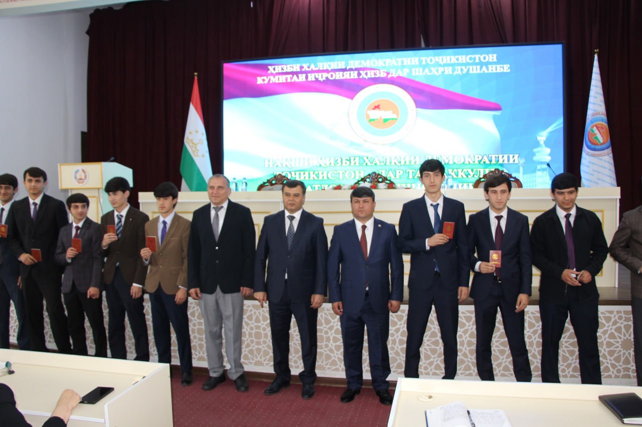 Дар фарҷоми чорабинӣ ба як қатор донишҷӯёне, ки қаблан ҷиҳати пайвастан ба сафи ҲХДТ аризаҳои хешро пешниҳод намуда буданд, дар вазъияти тантанавӣ шаҳодатномаҳои ҳизбӣ тақдим карда шуд.