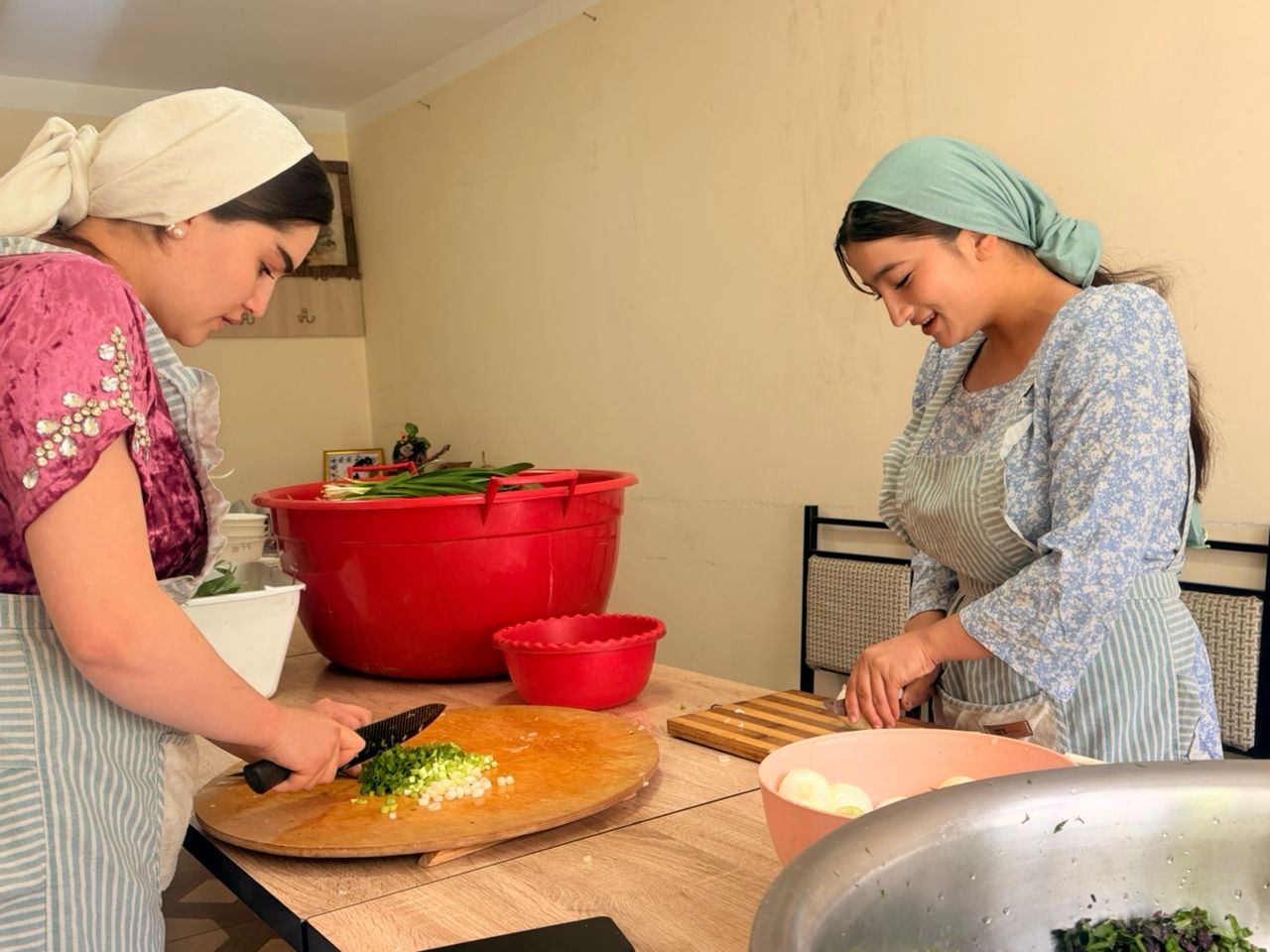 Дар ҷараёни дарс ба донишҷӯдухтарон тарзи омода намудани хӯрокҳои миллии рамзи фасли баҳор — хӯроки сиёҳалаф ва самбӯсаи алафии “бичак”, ки аз алафҳои шифобахши табиӣ омода карда мешаванд, ба таври амалӣ нишон дода шуд.