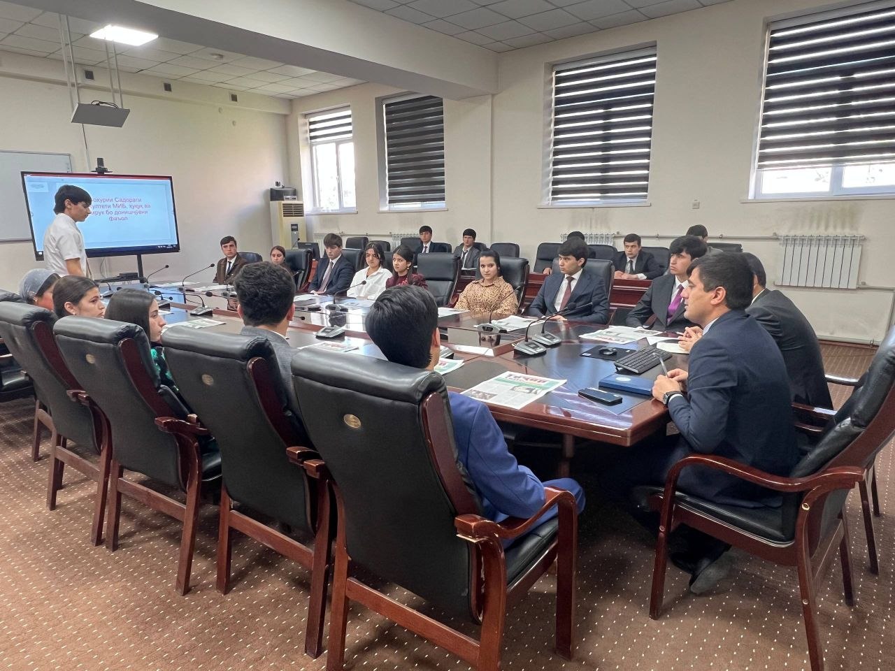 Дар фарҷоми чорабинӣ декани факултет Ҷовидон Сафаров доир ба хидматҳои бесобиқаи Пешвои муаззами миллат муҳтарам Эмомалӣ Раҳмон дар тарбия ва ташаккули мафкураи миллии ҷавонон, бедории ҳисси ватандӯстӣ ва омода кардани насли соҳибмаърифат андешаронӣ кард. Аз ҷумла иброз дошт, ки фароҳам овардани шароити мусоид барои таълиму тарбия, рушди ҷавонон, амалӣ шудани лоиҳаҳои давлатии сармоягузорӣ дар соҳаи маориф, стипендияҳои президентӣ, грантҳо барои лоиҳаҳои ҷавонон, ҷоизаҳои давлатӣ барои олимони ҷавон, ҷавоникунонии кадрҳо - таъйини ҷавонони лаёқатманд ба вазифаҳои роҳбарикунанда барои баланд бардоштани руҳияи худшиносию худогоҳии миллӣ, ватандӯстӣ, ахлоқи ҳамида, меҳнатдӯстӣ ва пос доштани арзишҳои миллию умумибашарӣ мусоидат менамоянд.