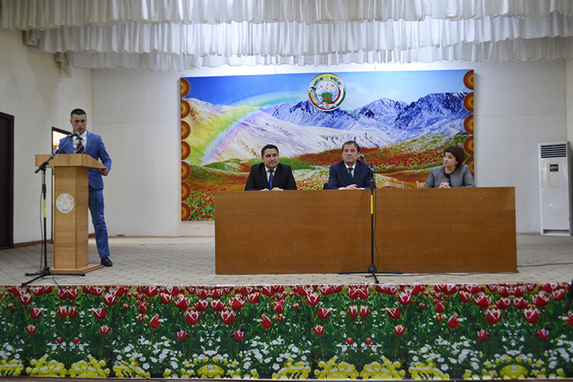Нахуст сухани ифтитоҳиро декани факултет н.и.и., дотсент Шаропов Ф.Р. ифтитоҳ намуда, ректори донишгоҳ профессор Фақирзода Ҳамидуллохон Нуриддинро ба ин вазифаи пурмаҳсул табрику таҳният намуда, ба устод дар корҳои минбадаашон комёбиҳои беназиро таманно кард.