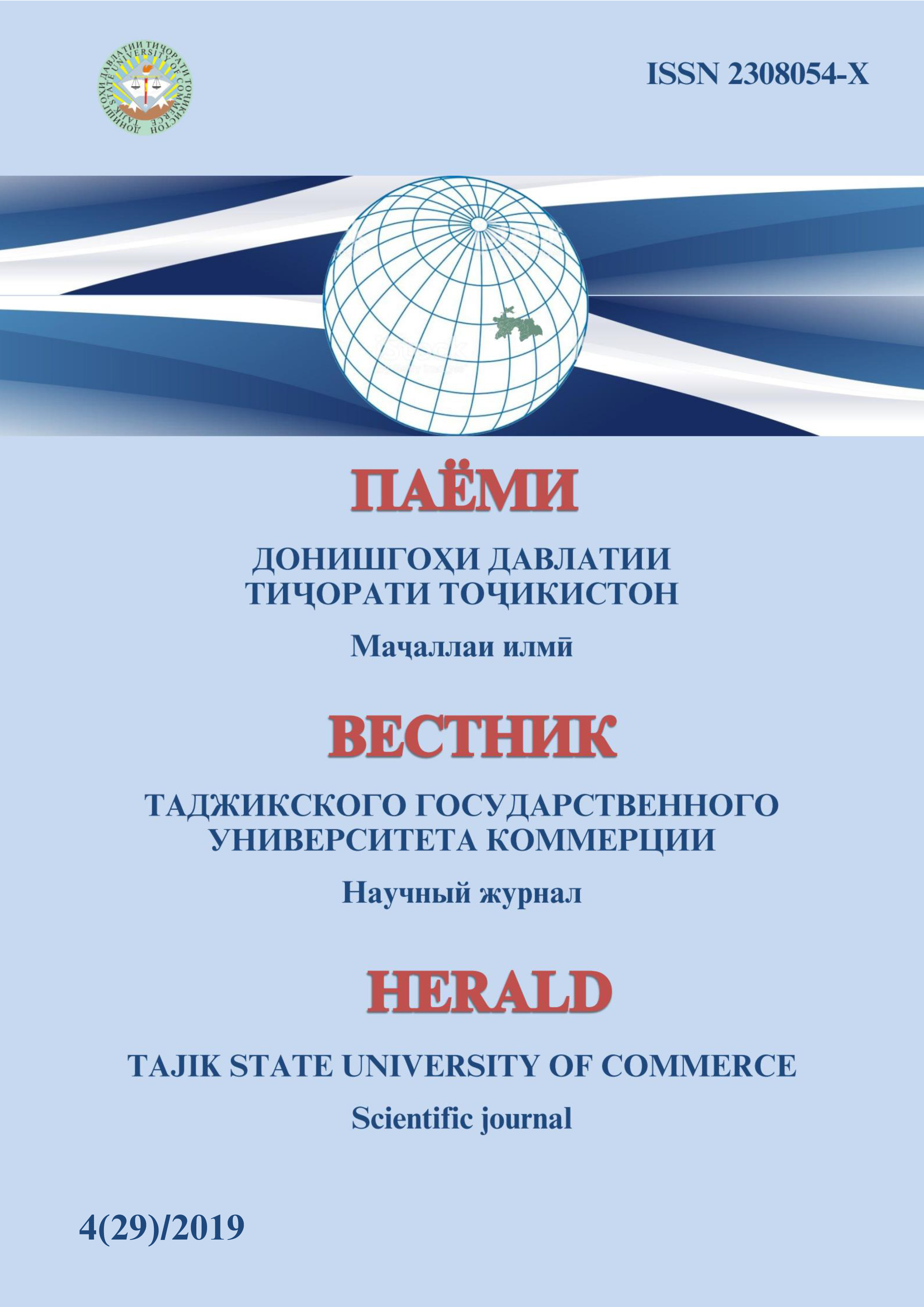 ВЕСТНИК ТАДЖИКСКОГО ГОСУДАРСТВЕННОГО УНИВЕРСИТЕТА КОММЕРЦИИ.